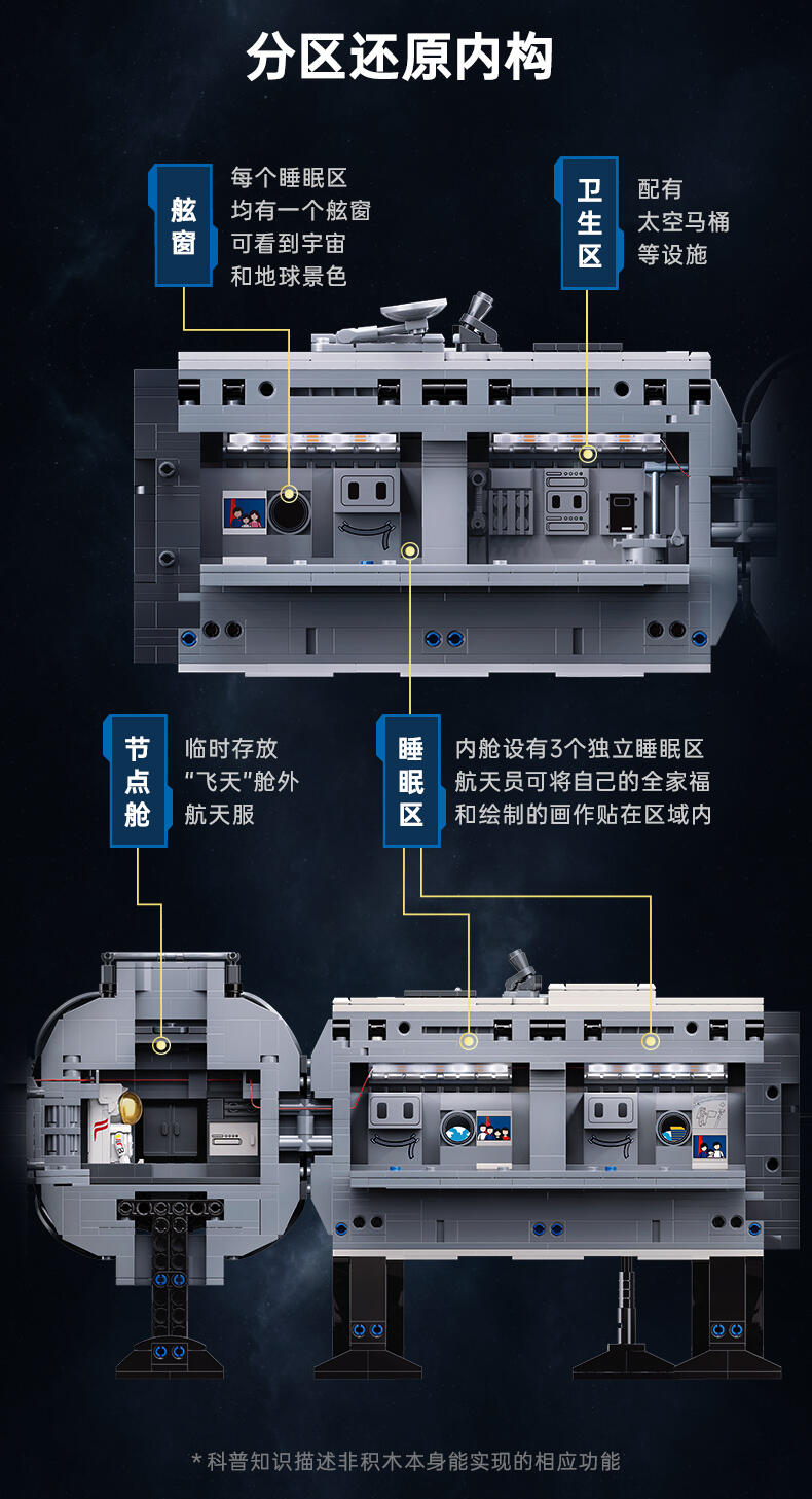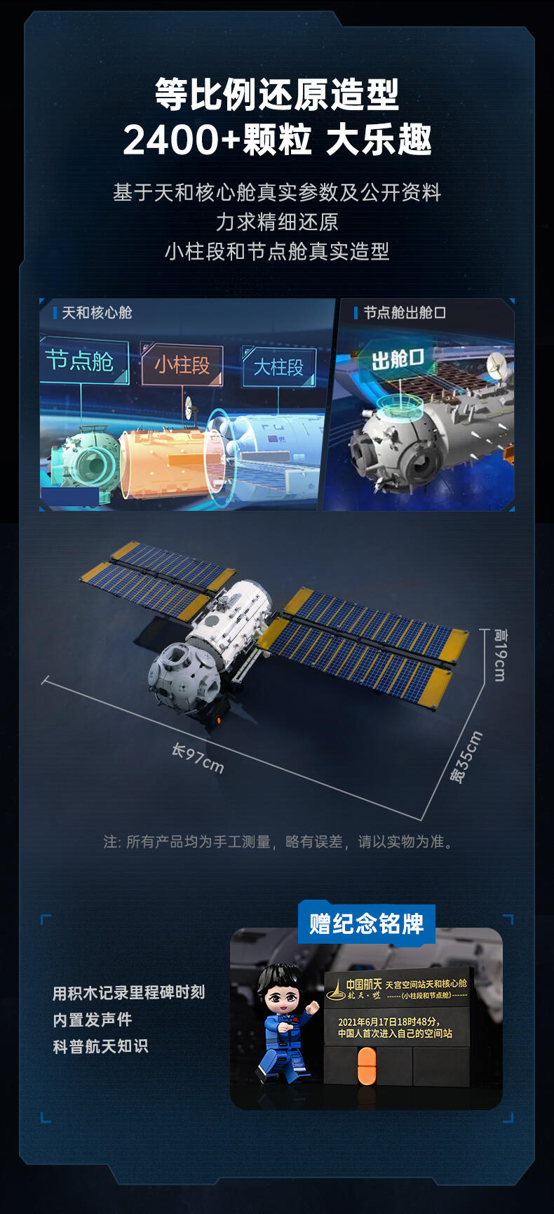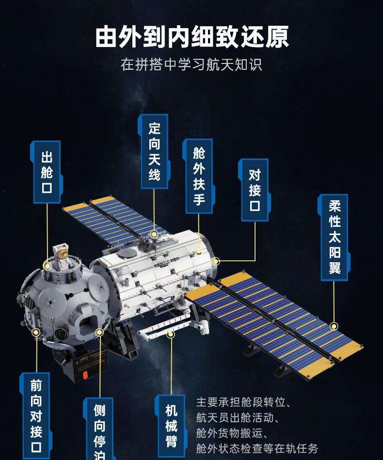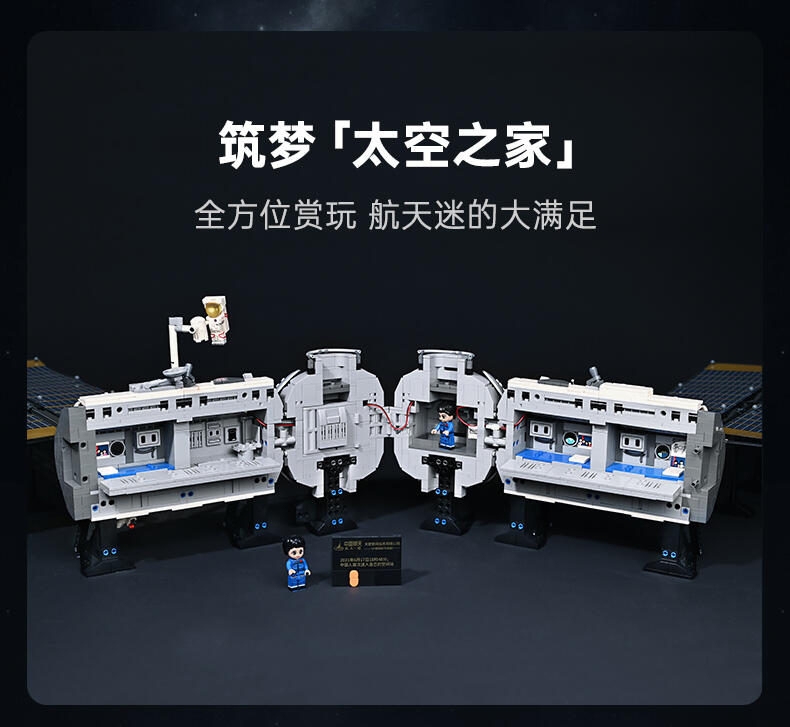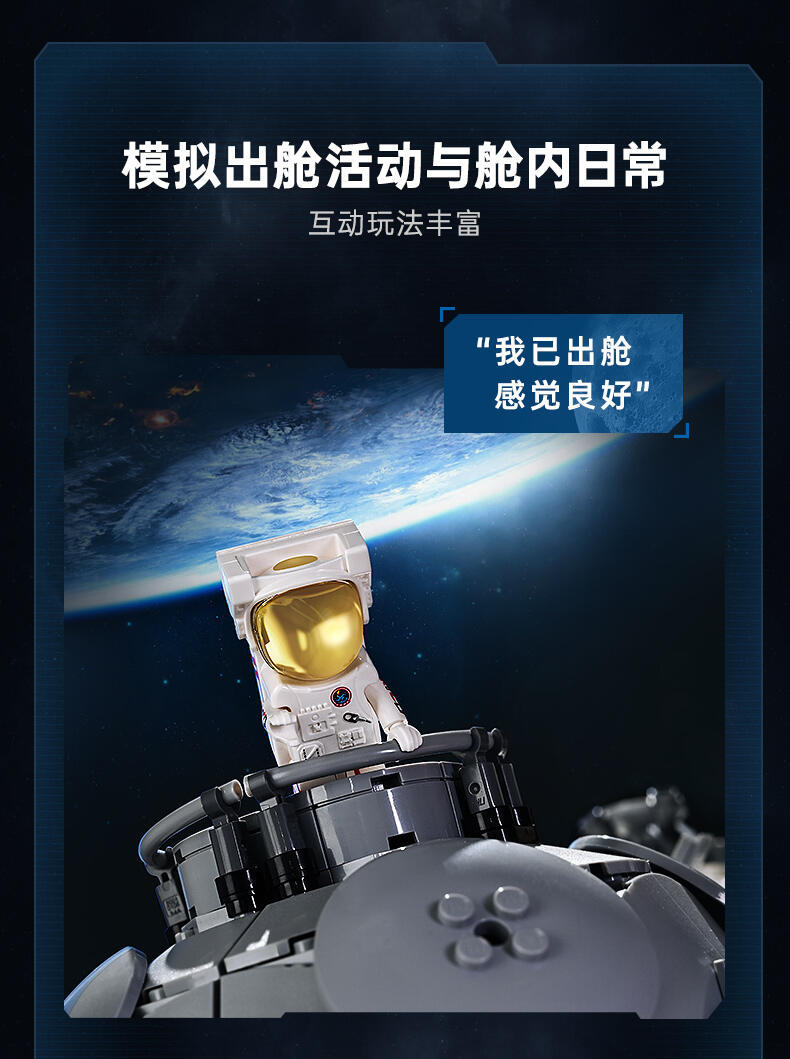 Keeppley首次推出可容纳积木人仔比例的中国航天正版授权积木,还原中国空间站天和核心舱,总颗粒数超5400+,体积庞大,具有一定拼搭挑战性,可以满足航天迷把玩与收藏的需求