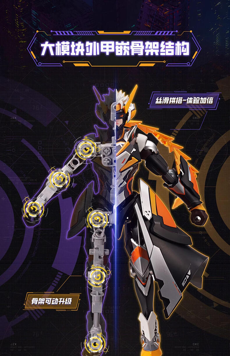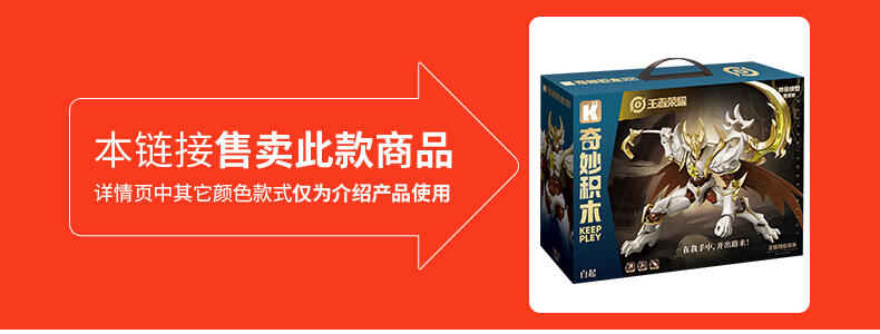 白色死神是白起的一款勇者皮肤,身穿白色铠甲手持金色巨镰,棱角分明,充满力量感。 ①23cm骨架+外甲,大零件板件拼装,并搭载专属武器配件,造型霸气; ②免胶免剪免涂装,新手友好;③关节灵活自如,轻松驾驭并解锁各式各样的战斗姿态; ④配闪耀角色卡,提升收藏体验,赋予更多趣味;