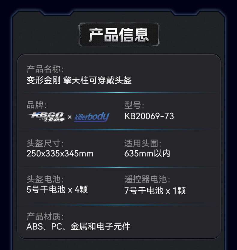 Killerbody 1:1变形金刚擎天柱可穿戴头盔(不含底座)