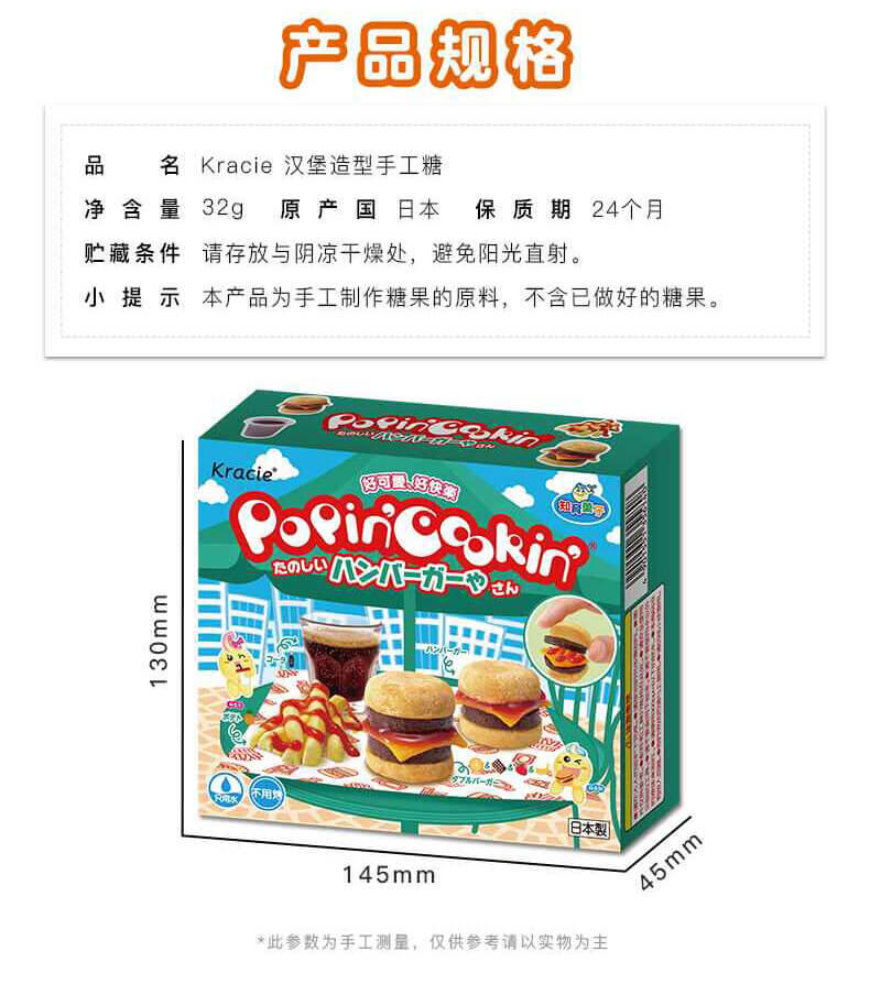 日本食玩品牌kracie本年新品汉堡造型手工糖,原材料安心,安全,健康;