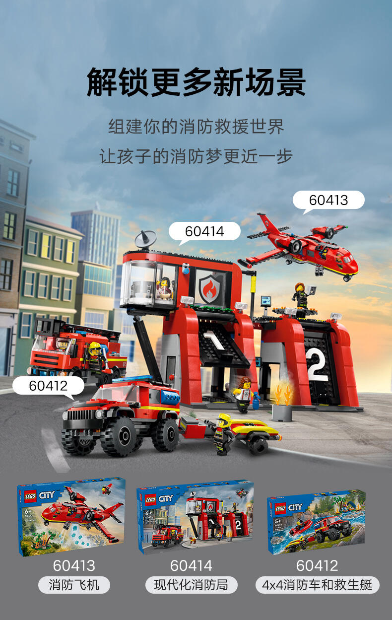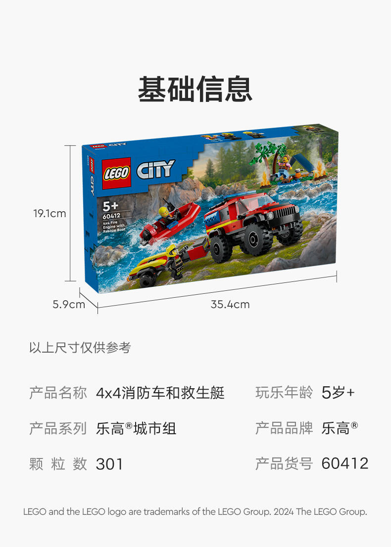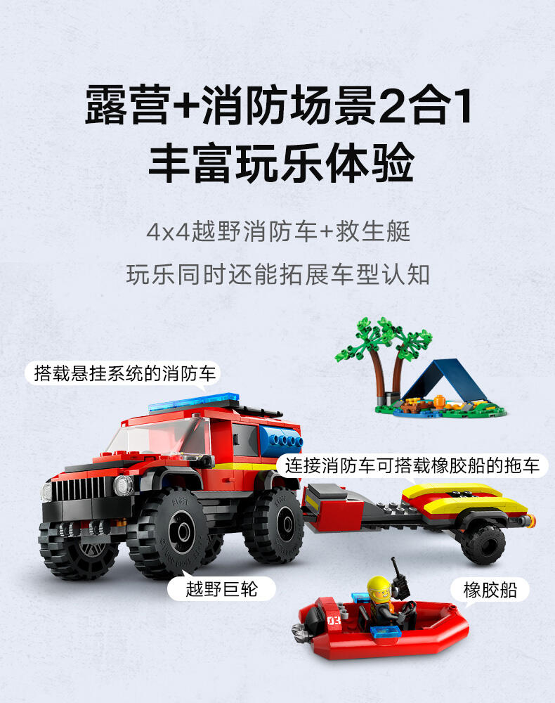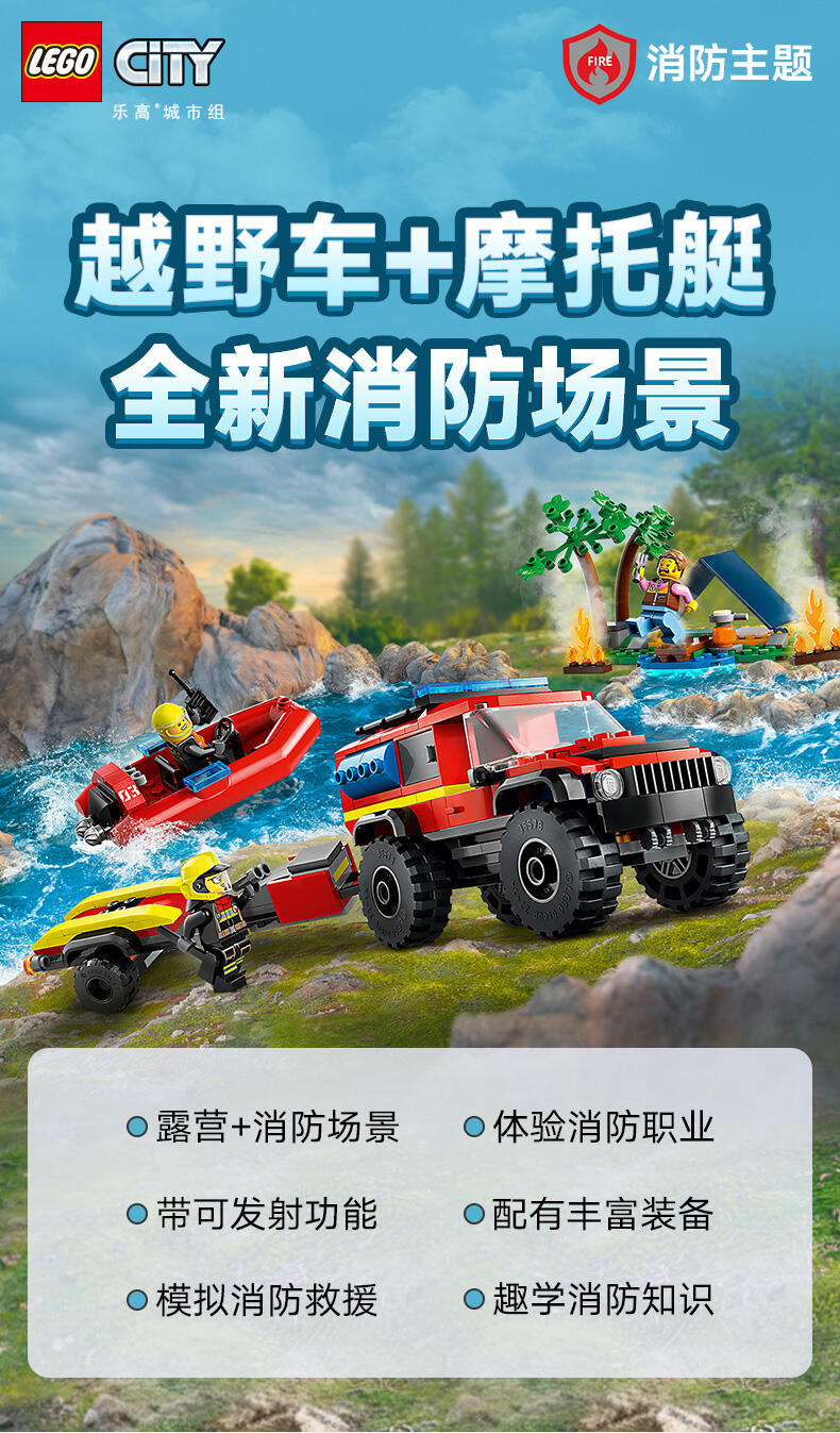 LEGO乐高 城市系列60412 4x4 消防车和救生艇
