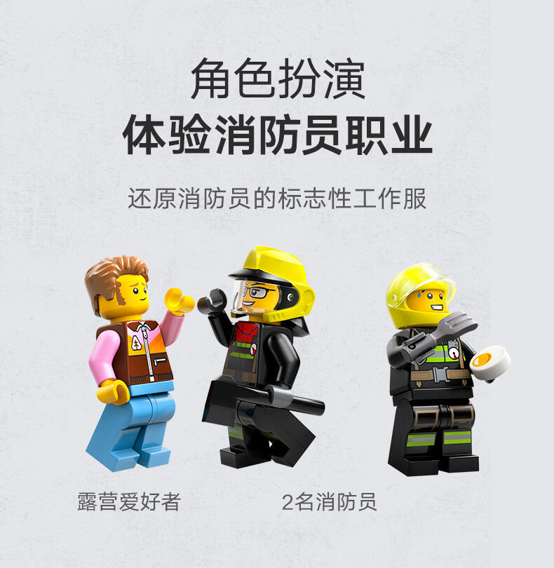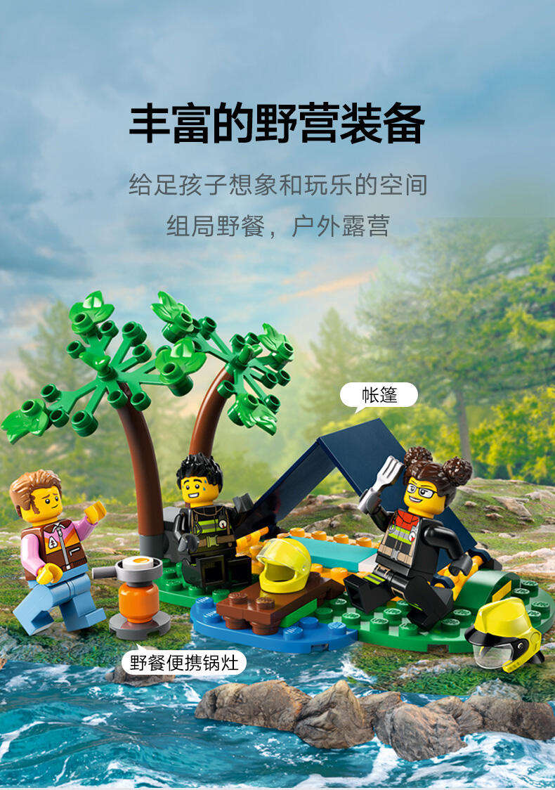 以下是玩具消防救援车爱好者的获胜组合。这款酷炫的乐高城市4x4消防车配有救援船(60412),适合5岁以上的儿童使用,非常适合动作密集的消防游戏,配有运输救援船的拖车、玩具帐篷和带篝火的露营场景。只需添加消防员和露营者的迷你图,就可以开始冒险了