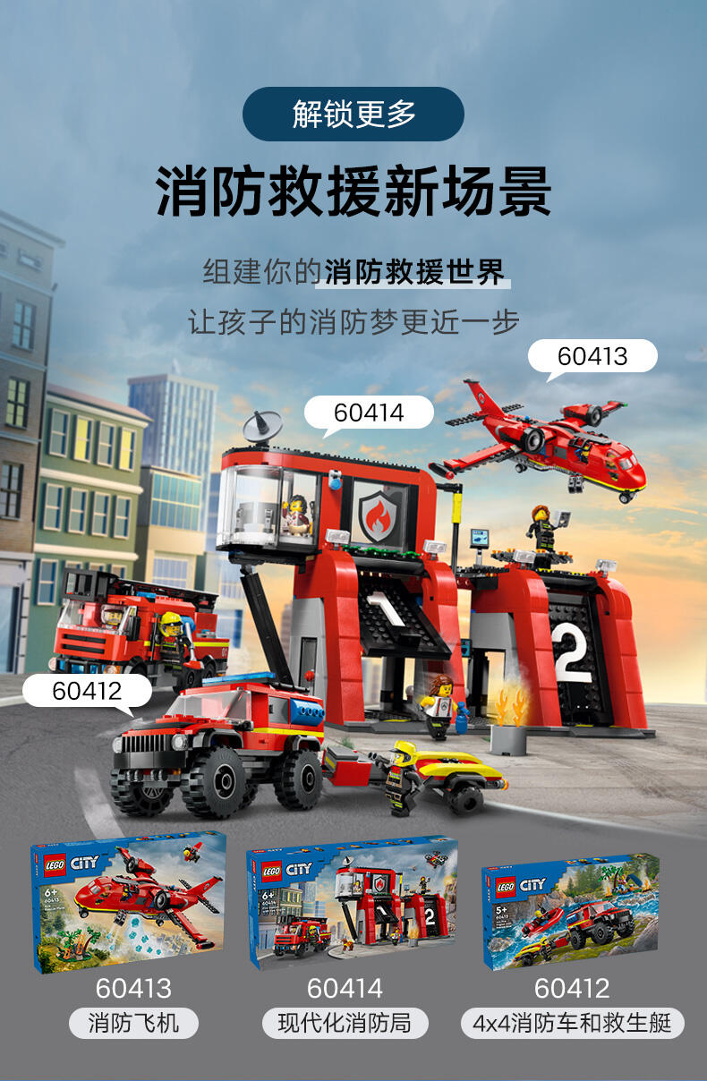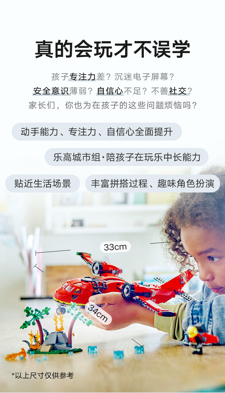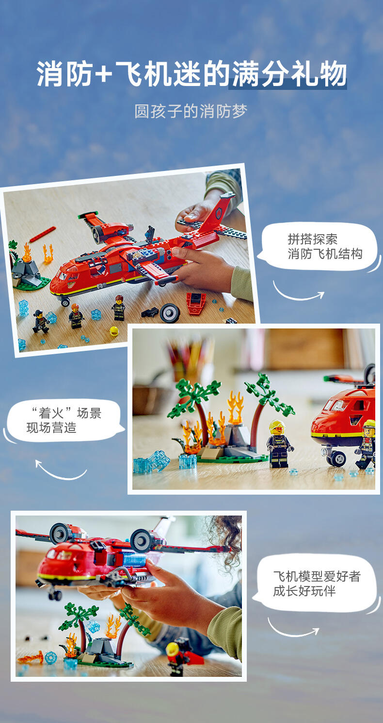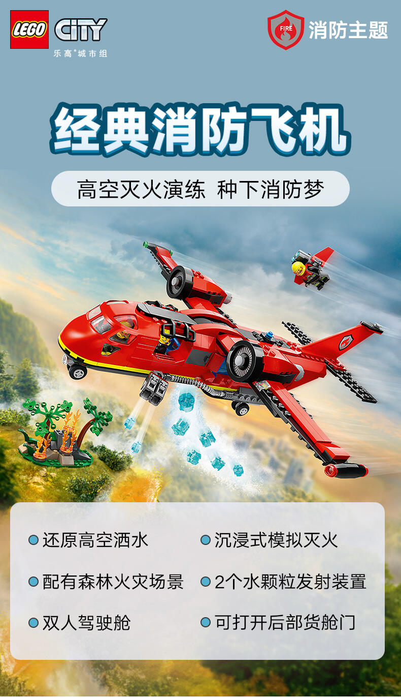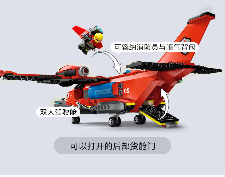 - 玩具消防救援飞机-乐高 城市消防救援飞机有许多特色,为 6 岁以上玩家带来逼真的消防游戏