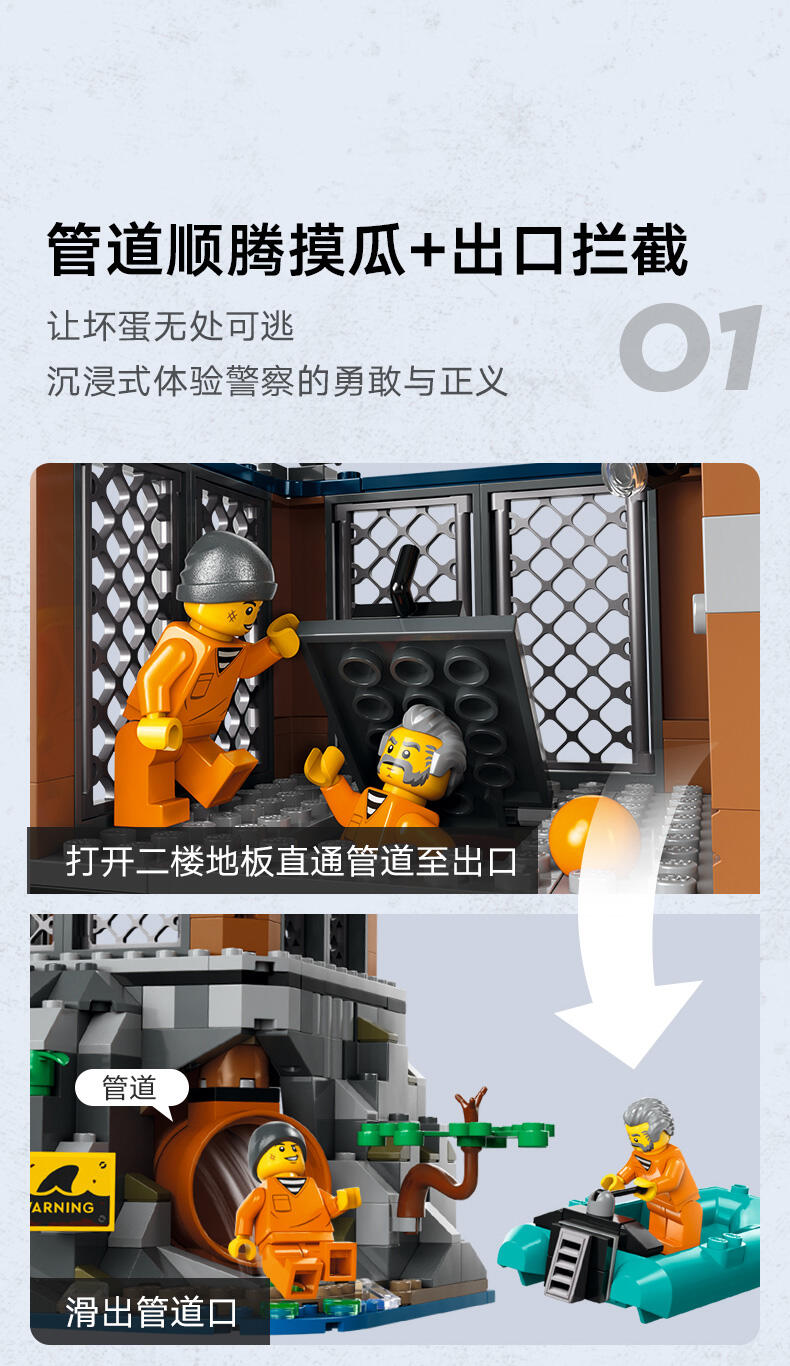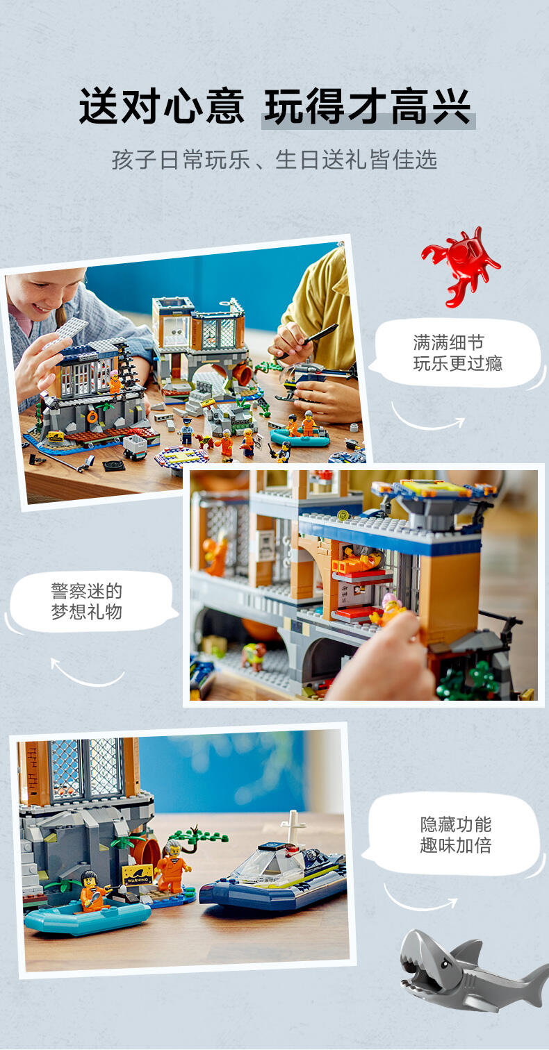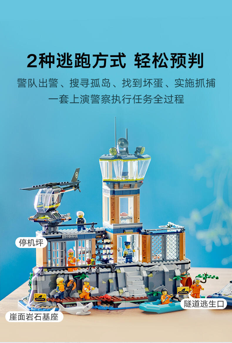 专为 7 岁及以上的孩子准备的监狱岛警察玩具——这款乐高 市组监狱岛充满有趣的细节和功能,可供进行长时间的创意玩乐