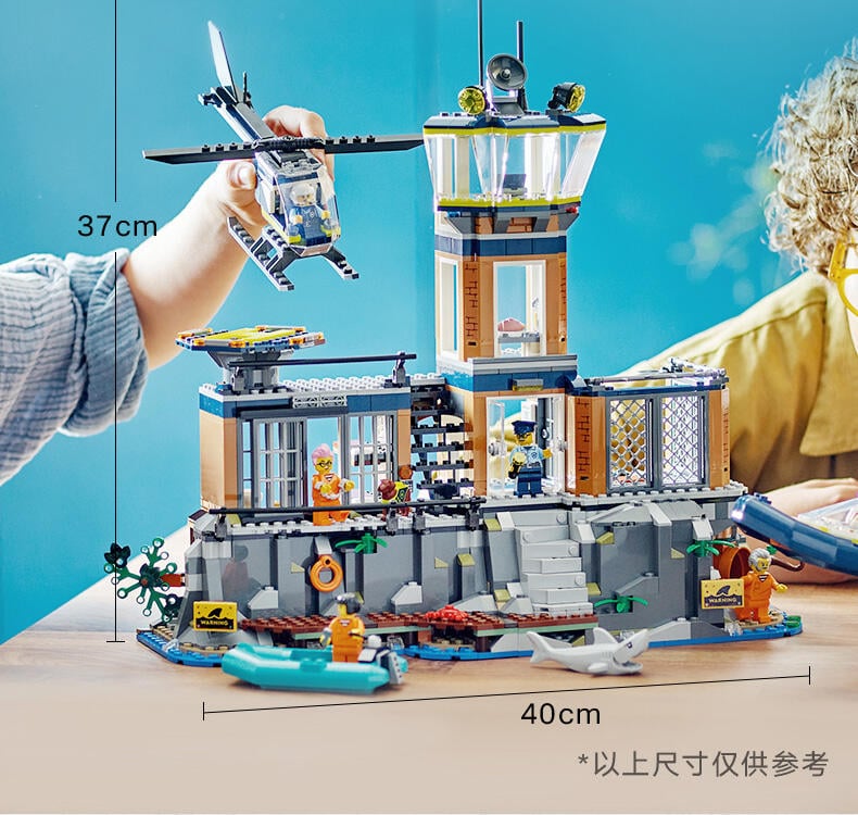这款拼搭套装内含 980 块组件,其中的监狱岛尺寸为:高 37 厘米(14.5 英寸)、宽 40 厘米(15.5 英寸)和深 16 厘米(6 英寸)