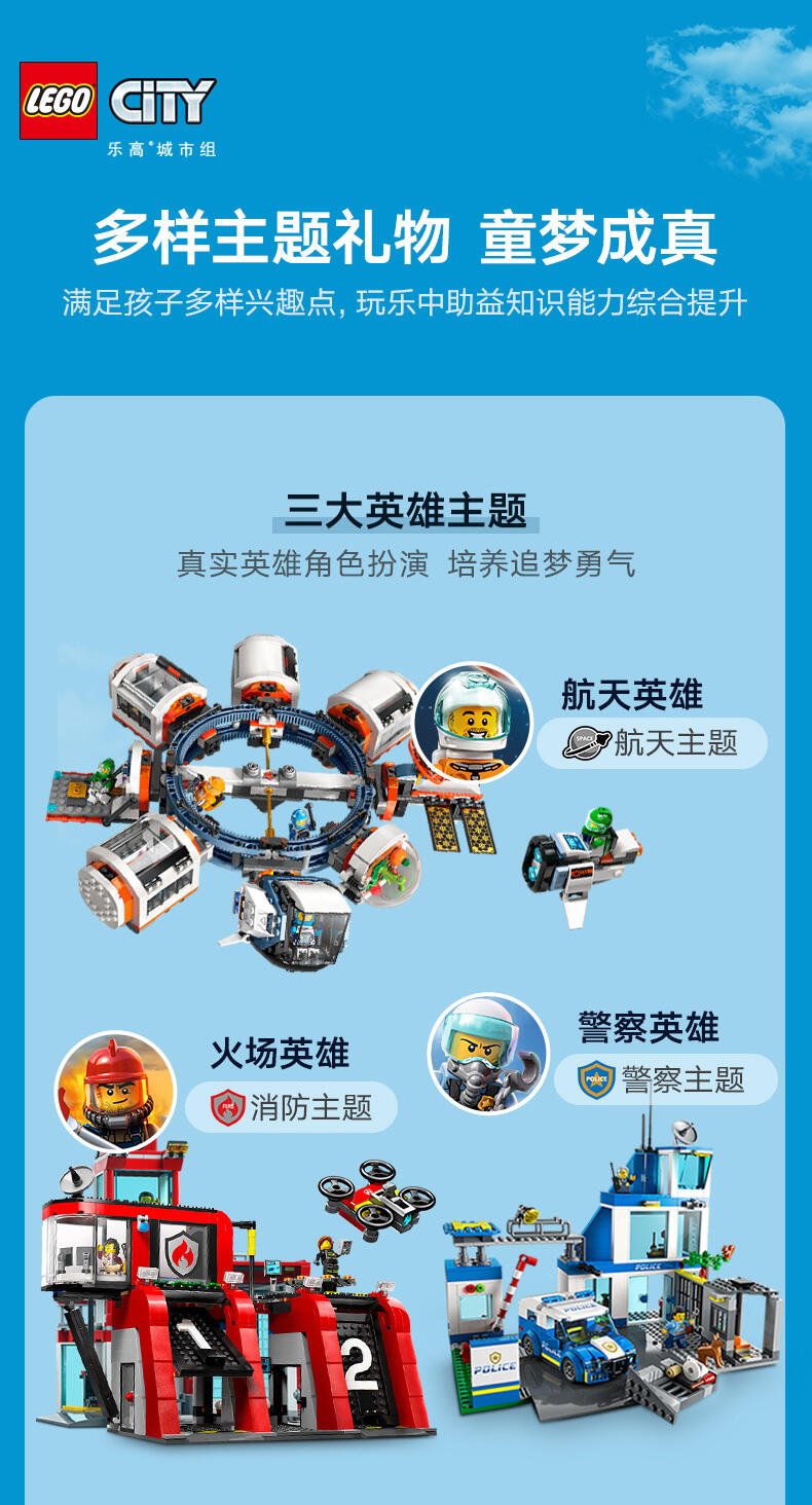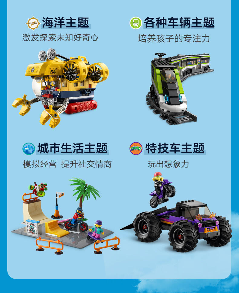 城市无极限——乐高 市是一个孩子们可以尽情发挥想象力的地方,这里有建筑、交通工具、市民,能够激发他们进行拼搭、创造、探索和玩乐的热情