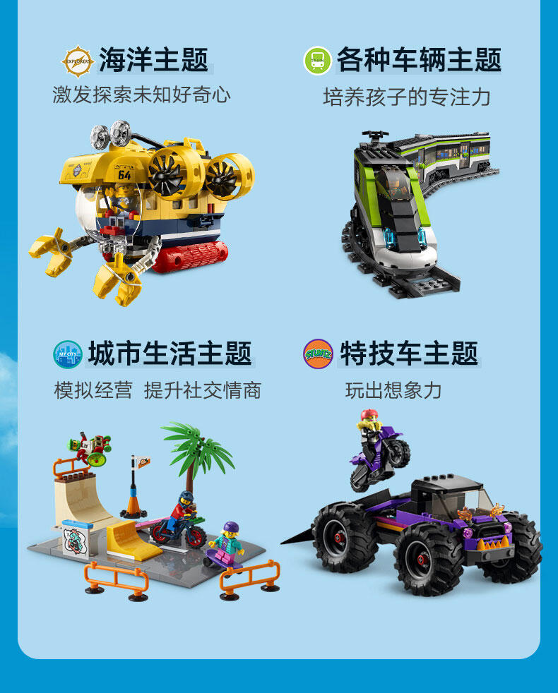 - 这款乐高 城市组滑雪救援队 (60403) 玩具套装包含一辆带有巨型轮胎的玩具救护车,可供进行越野救援。可利用此套装,让你的小拼搭师度过美好的玩乐时间。这款有趣的套装还包含一个白雪覆盖的滑板场迷你场景,以及滑雪者和护理人员小人仔,可供表演创意故事。 这款易于拼搭的救援车玩具套装提供乐高入门积木组件、图解式指南,以及 LEGO Builder 应用程序中的三维说明。此应用程序是一个数字拼搭助手,拥有直观的工具,允许孩子们在拼搭过程中缩放、旋转以及从各个角度查看模型。 你的城市,无极限!乐高城市组套装包含很酷的交通工具、逼真的建筑和有趣的角色,能够启发孩子们进行现实生活主题的创意玩乐。可将这款救护车玩具套装与其它乐高城市组套装(单独出售)组合,步入玩乐的世界。
