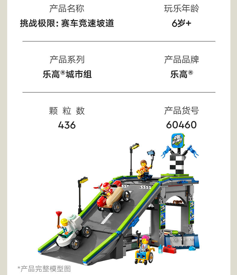 LEGO乐高 城市系列 60460 挑战极限:赛车竞速坡道