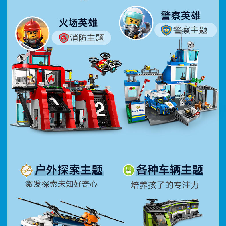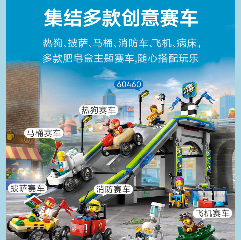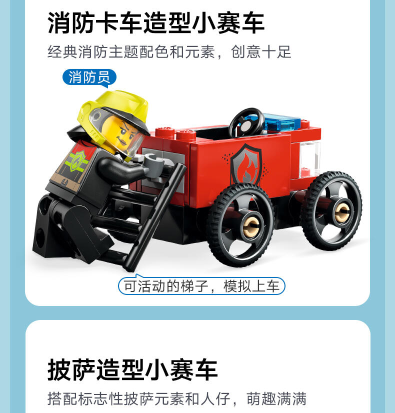 LEGO乐高 城市系列 60458 披萨外卖车 x 消防卡车竞速套装