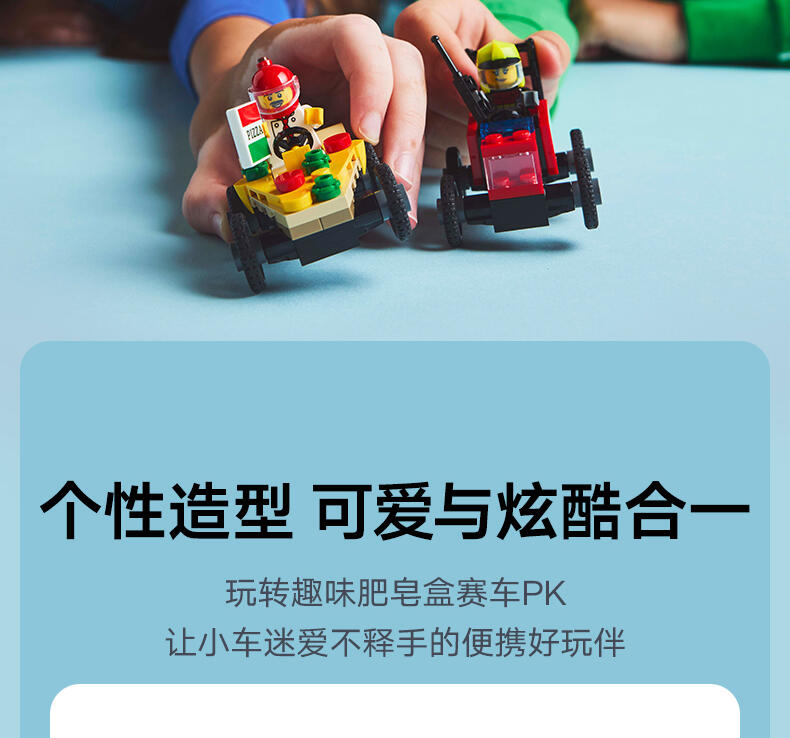 为5岁及以上的儿童准备LEGO City Pizza vs.Fire Truck race Car Pack(60458),送给你的赛车迷。这套有趣的赛车套装有2辆肥皂盒赛车和2个迷你人偶。孩子们可以让厨师在热气腾腾的披萨片上与消防车上的消防员对决。谁会赢?坐下来观看史诗般的城市比赛吧!这款乐高赛车玩具包括一份分步打印的构造指南。孩子们还可以使用LEGO Builder应用程序享受有趣的建筑冒险,在那里他们可以放大、旋转3D模型、跟踪他们的建造进度,以及探索和保存其他游戏集。乐高城市游戏套装以酷炫的车辆、逼真的结构和有趣的角色为特色,激发了无限的游戏灵感。孩子们可以将这款肥皂盒汽车套装添加到乐高城市系列的其他汽车(单独出售)中,以扩大他们的游戏世界。