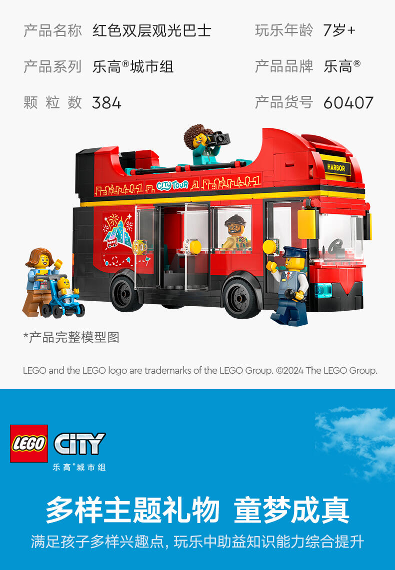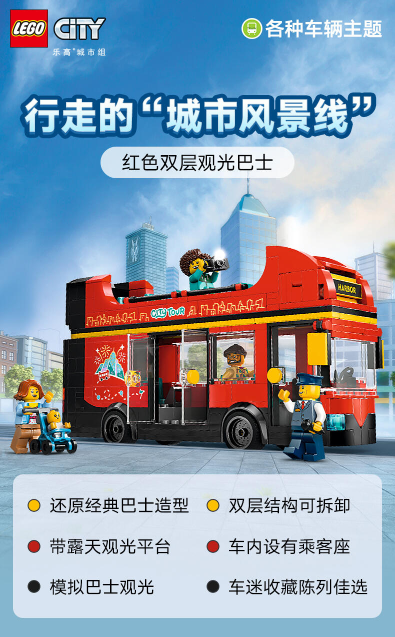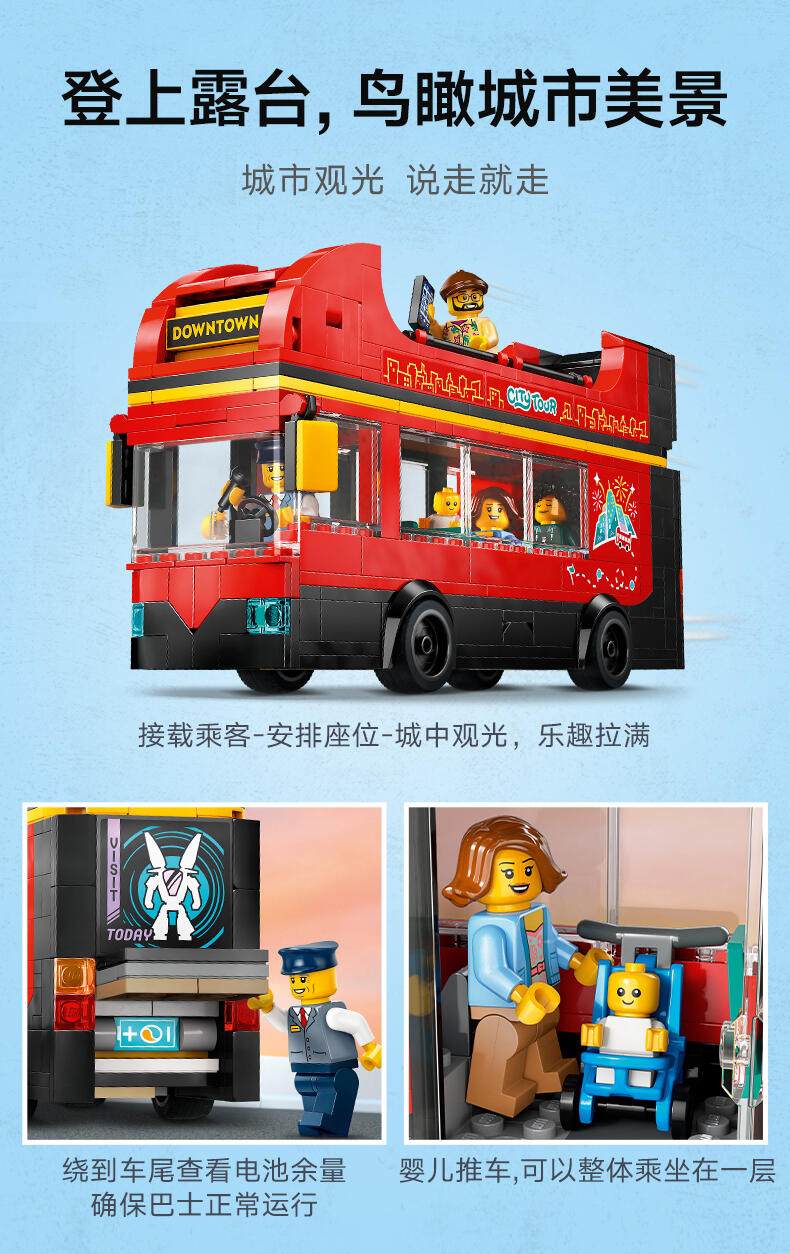 LEGO乐高 城市组 60407 红色双层观光巴士