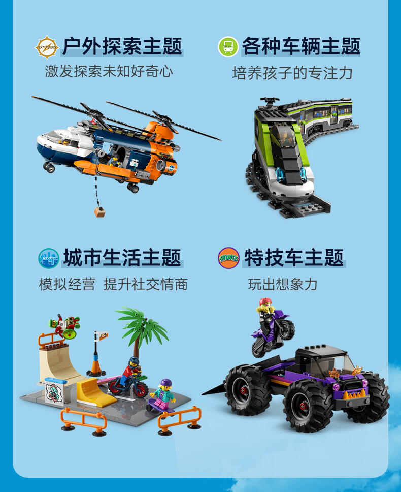 乐高城市套装是送给孩子们的绝佳节日和生日礼物,有酷炫的汽车玩具、逼真的结构和有趣的角色,激发了无限想象力。孩子们可以将这款乐高城市巴士添加到乐高城市系列的其他玩具中(单独出售),以扩大游戏世界的可能性。