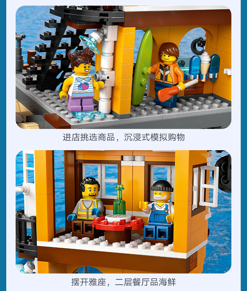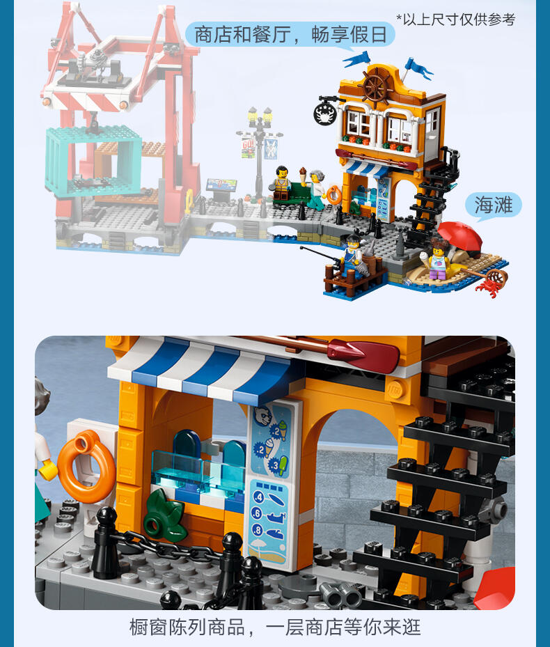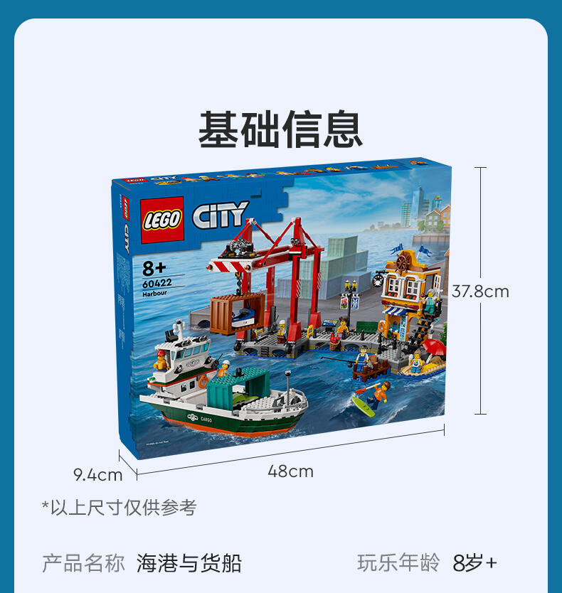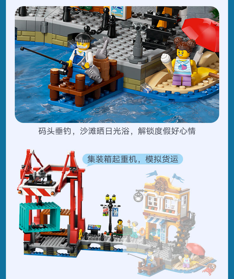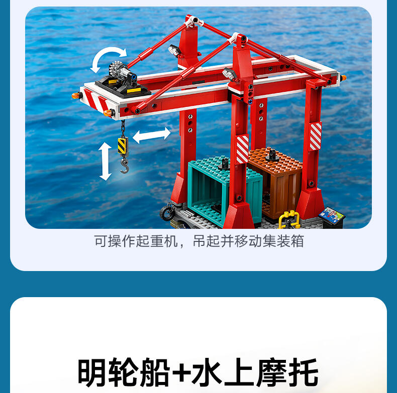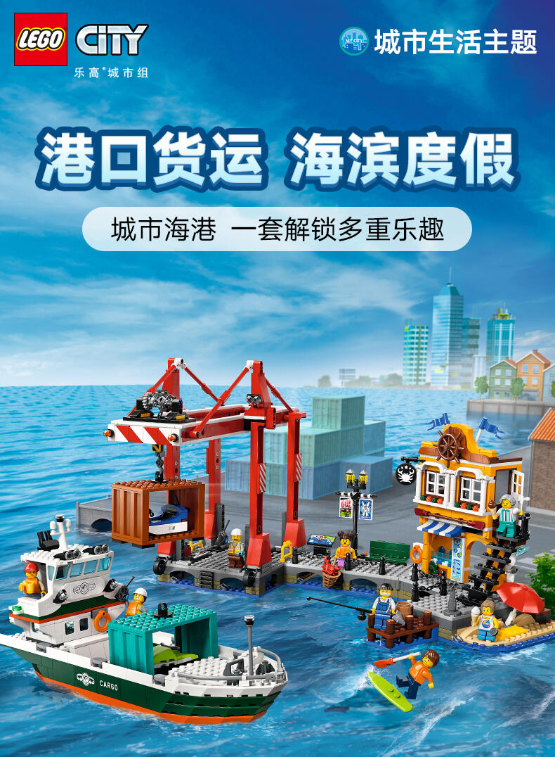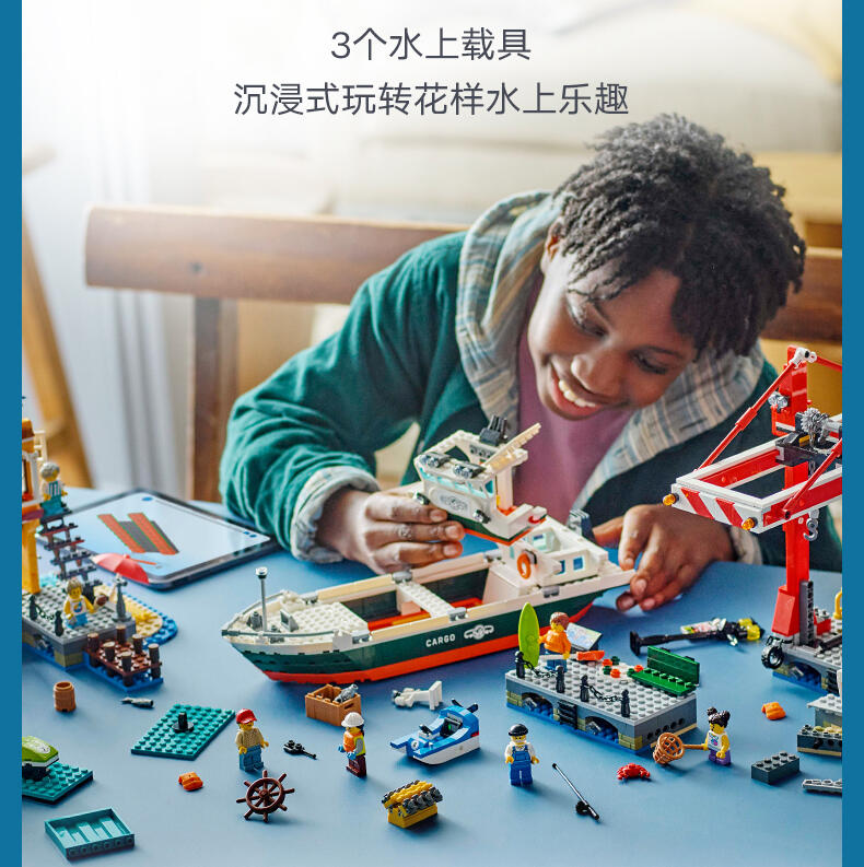 这款乐高 市海滨港配有货船玩具建筑套装(60422),适合8岁及以上儿童玩耍,为孩子们带来舒适的码头氛围。孩子们可以使用玩具起重机从乐高船上吊起集装箱,并享受港口的旅游区,包括商店、海鲜餐厅和海滩。该套装还包括一艘较小的玩具船和一辆水上滑板车,以及8个用于角色扮演和讲故事的迷你人偶。