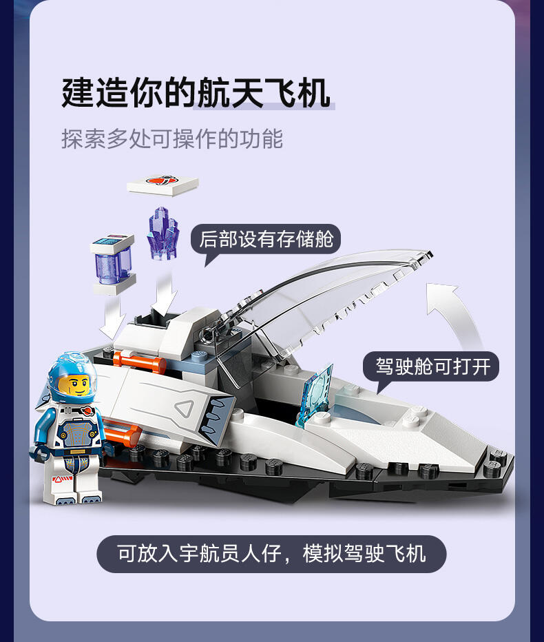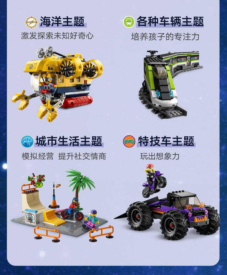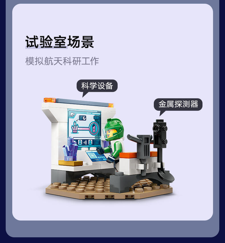 无尽的玩乐机会——乐高 市组太空玩具套装包含逼真的交通工具、细节丰富的建筑和具有启发性的角色,可将想象的世界与现实世界融合在一起,供你尽情进行创意玩乐