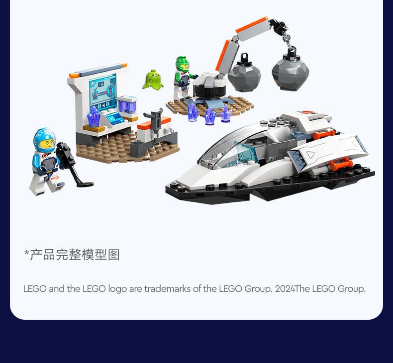 创意玩乐——孩子们可以让航天飞机在小行星上降落,然后使用起重机吊起内含能量水晶的陨石,在太空实验室中进行测试