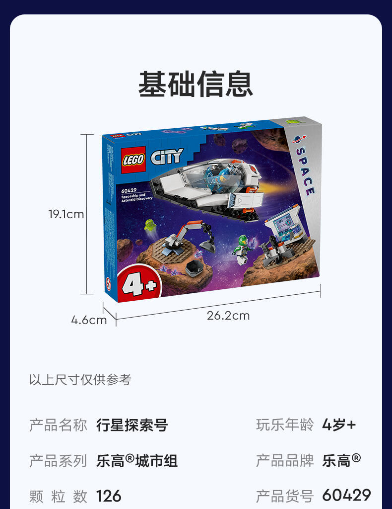 乐高 市组航天飞机玩具套装——可将这款专为 4 岁及以上孩子准备的乐高城市组行星探索号玩具套装送给您的小太空探险家,体验长时间的探险乐趣
