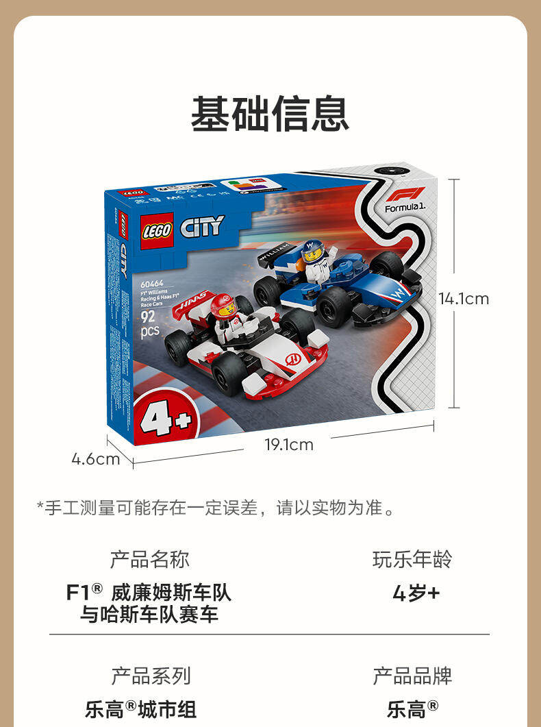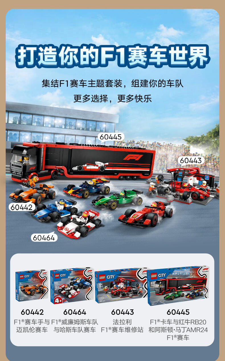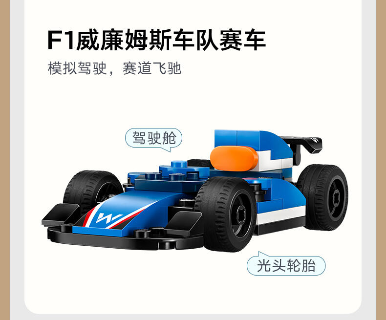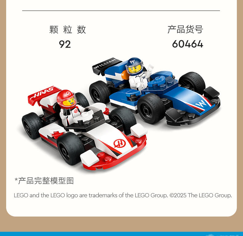 LEGO乐高 城市系列 60464 F1 威廉姆斯车队与哈斯车队赛车