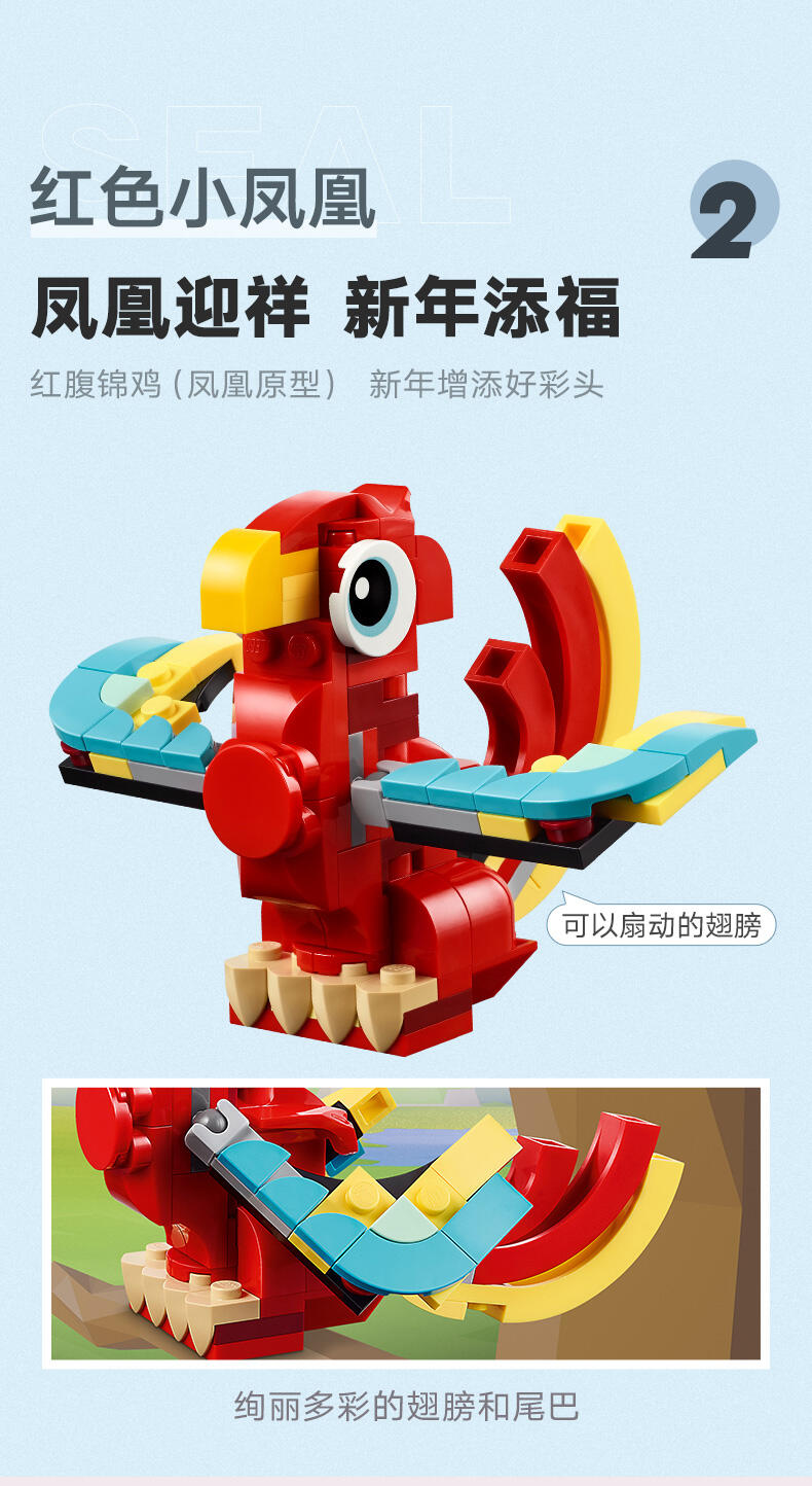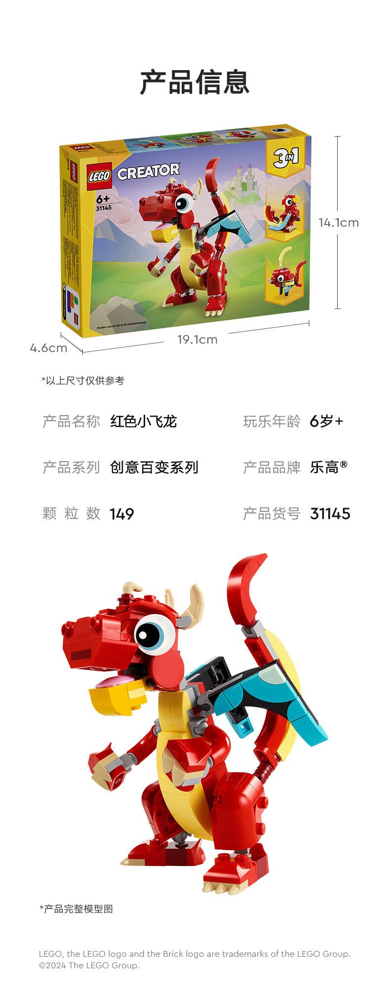 LEGO乐高 创意百变系列 31145 红色小飞龙