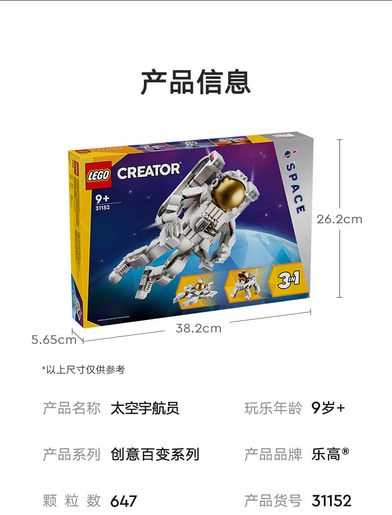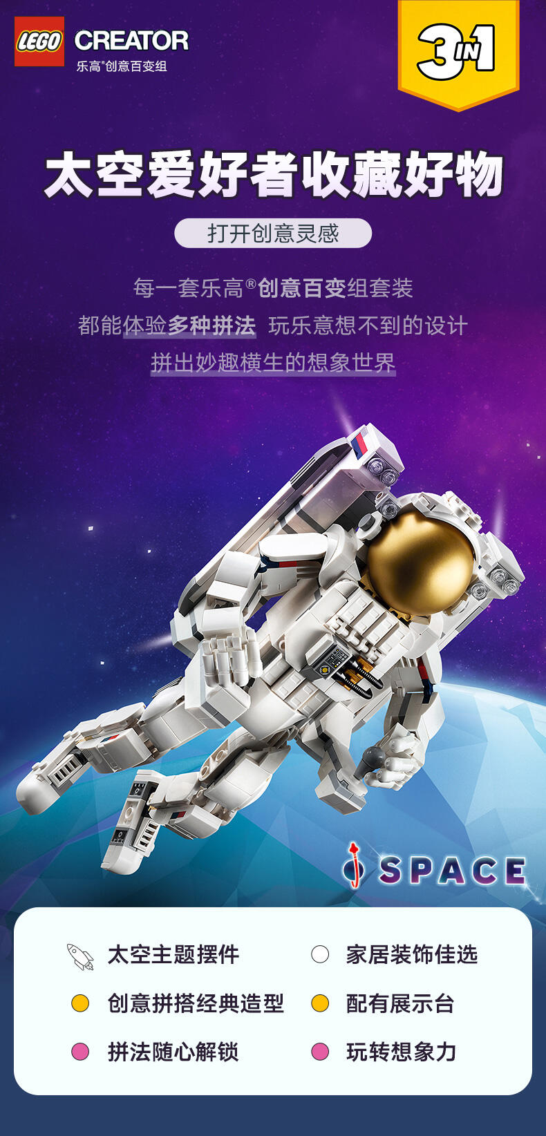 LEGO乐高 创意百变系列 31152 太空宇航员