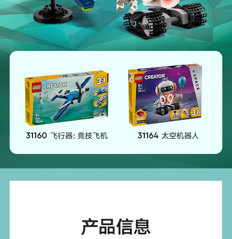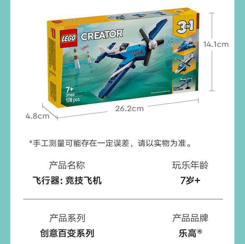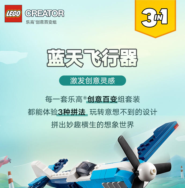 LEGO乐高 创意百变系列 31160 飞行器:竞技飞机