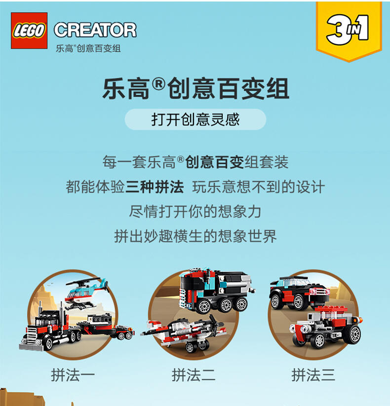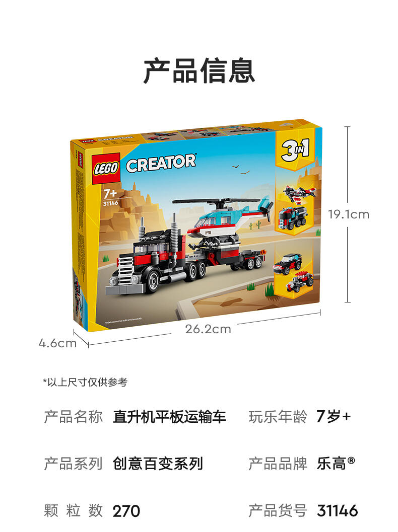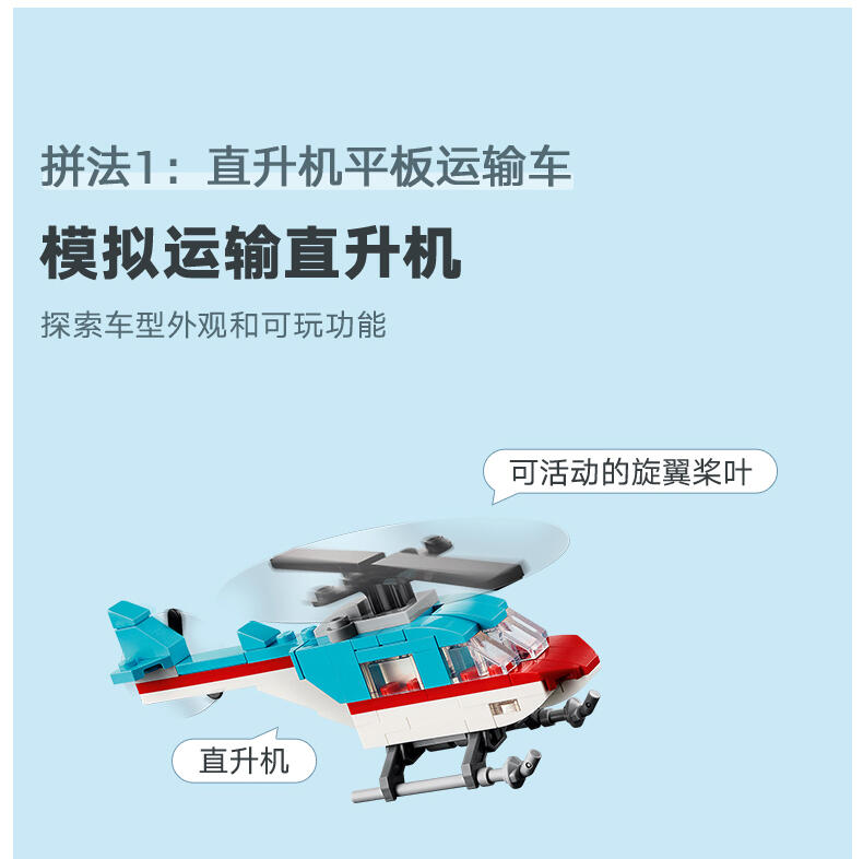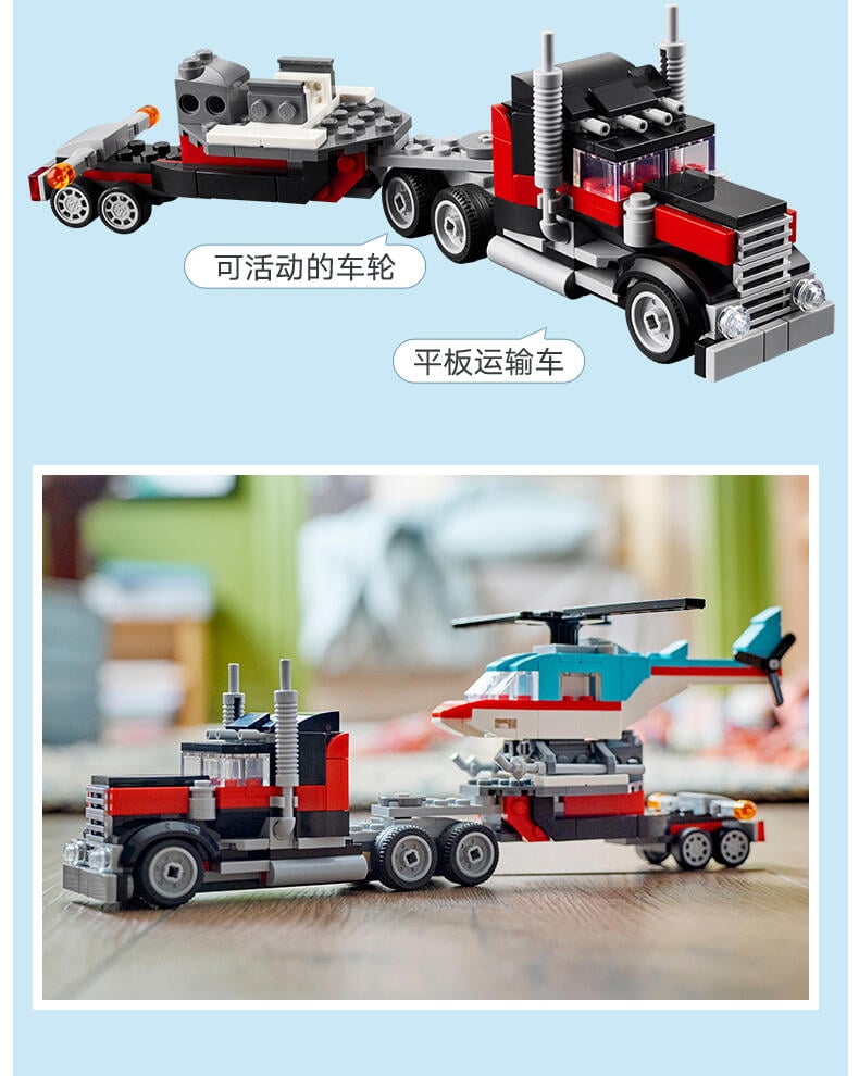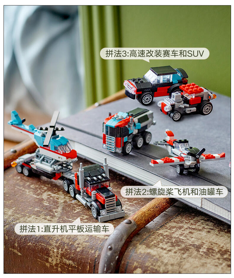 LEGO乐高 创意百变系列 31146 直升机平板运输车