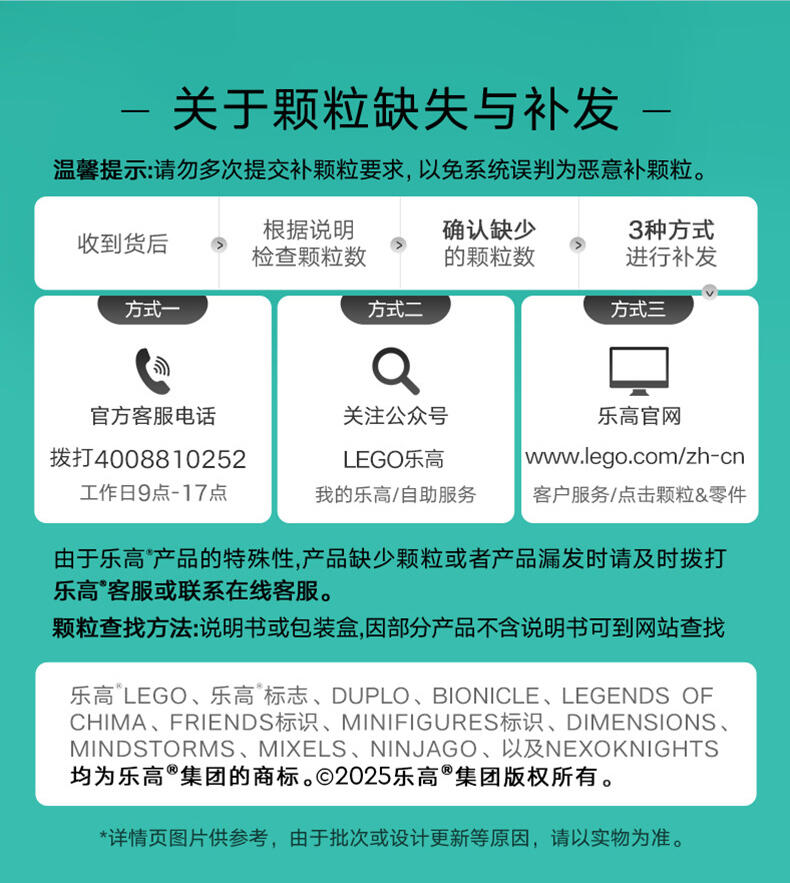 这款梦幻般的LEGO reator 3合1野生动物:粉红火烈鸟(31170)玩具套装,让8岁及以上的热爱动物的女孩和男孩感到高兴。这个粉红色的火烈鸟玩具有一个可摆姿势的头,栖息在一个覆盖着植物的小架子上,这样孩子们就可以享受数小时富有想象力的游戏,或者将其作为房间装饰展示出来。这个乐高玩具套装使用相同的积木为孩子们提供了3种不同的建筑选择:一个粉红色的火烈鸟玩具,在植物覆盖的支架上有一个可摆姿势的头部;一个可摆放姿势的粉红色凤头鹦鹉玩具,可以360度旋转头部;或者一个可爱的粉红色美西蝾螈玩具,上面有水下植物。所有3个可爱的乐高动物变形玩具都是给孩子们的有趣礼物。LEGO Creator 3合1套装激发孩子们的想象力,每个盒子里都有3个不同的模型!他们将兴奋地建造、重建和再次建造。三合一套装提供了一系列吸引孩子们最大热情的车型,包括超高速汽车、神奇的动物和精致的房子。模型不能同时构建。