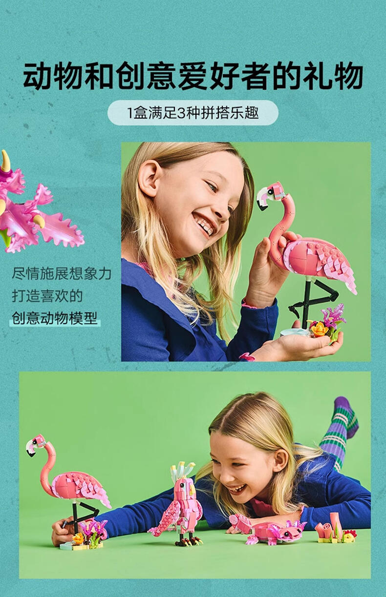 LEGO乐高 创意百变系列 31170 野生动物:粉红火烈鸟