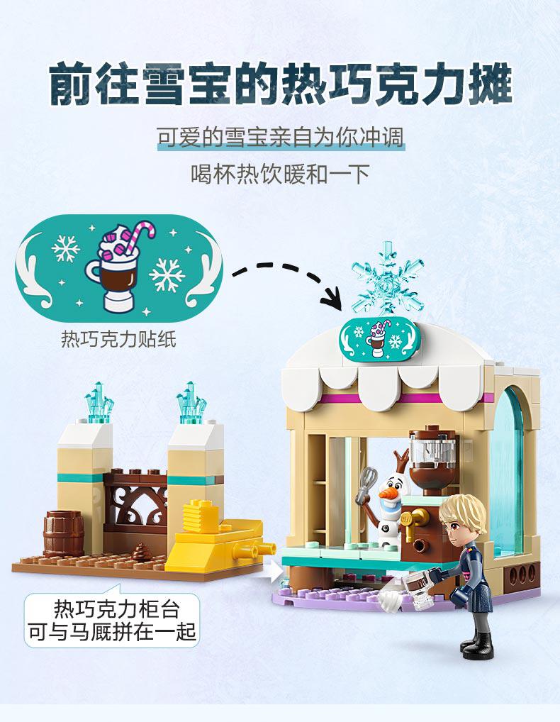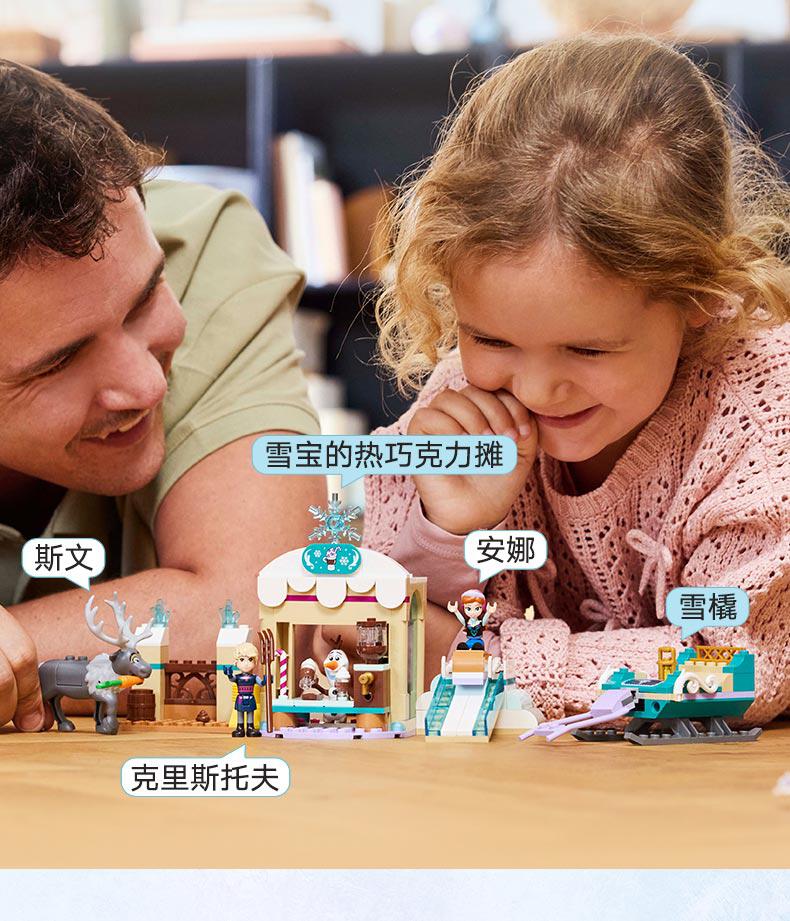 拼搭和玩乐这款乐高 ǀ 迪士尼冰雪奇缘安娜的雪橇冒险 (43256) 玩具套装,4 岁及以上的迪士尼《冰雪奇缘》粉丝们可以学习拼搭,还有许多冬日乐趣在等待着他们。本套装包含热巧克力摊、马厩、雪橇、小雪橇、可以滑雪橇的山岭及其它拼搭玩具物品。还包含 4 个角色:安娜和克里斯托夫乐高 ǀ 迪士尼迷你玩偶,以及雪宝乐高 ǀ 迪士尼雪人玩偶和斯文乐高 ǀ 迪士尼动物玩偶这款拼搭玩具可作为一份有趣的生日礼物,有助于增强自信心,让成人与孩子共享快乐。可利用该玩具满足孩子对迪士尼《冰雪奇缘》的喜爱之情。这款套装包含 2 块入门积木,可为孩子提供坚实的开端,每个积木袋都包含一个角色,以便快速体验玩乐的乐趣——完整的拼搭模型可以稍后完成!此外,本套装还可与其它的乐高 ǀ 迪士尼拼搭套装(单独出售)组合玩乐。除了为刚开始学习阅读的孩子准备的简易图解式说明外,LEGO Builder 应用程序还带来了轻松直观的拼搭探险,允许孩子们进行三维模型缩放和旋转等操作。