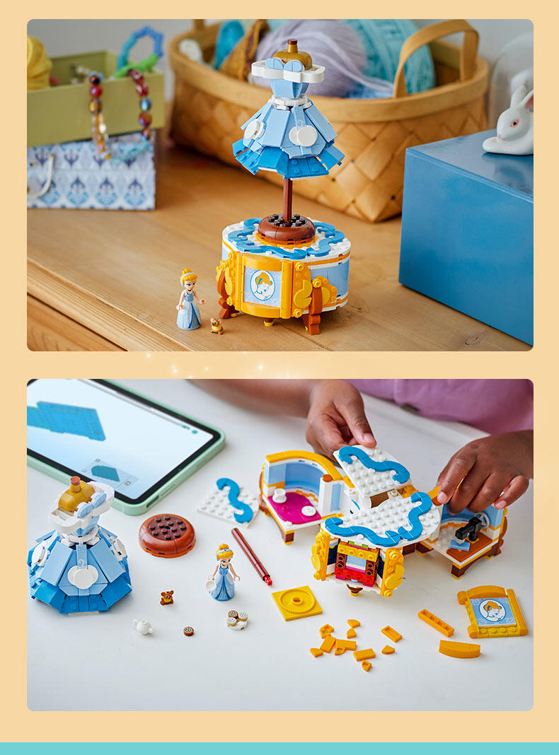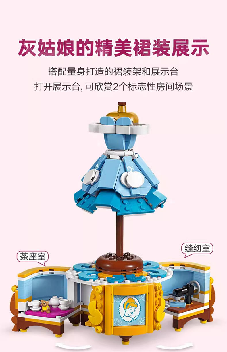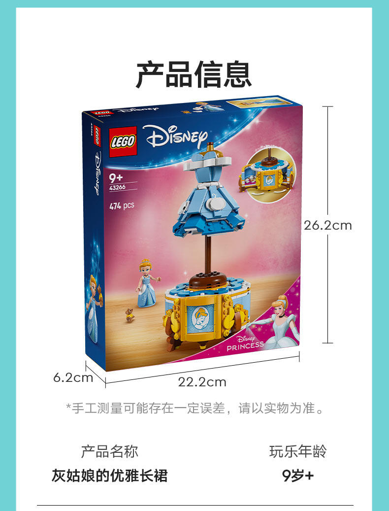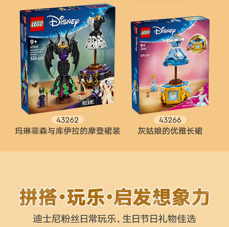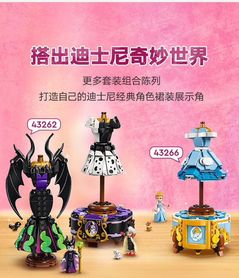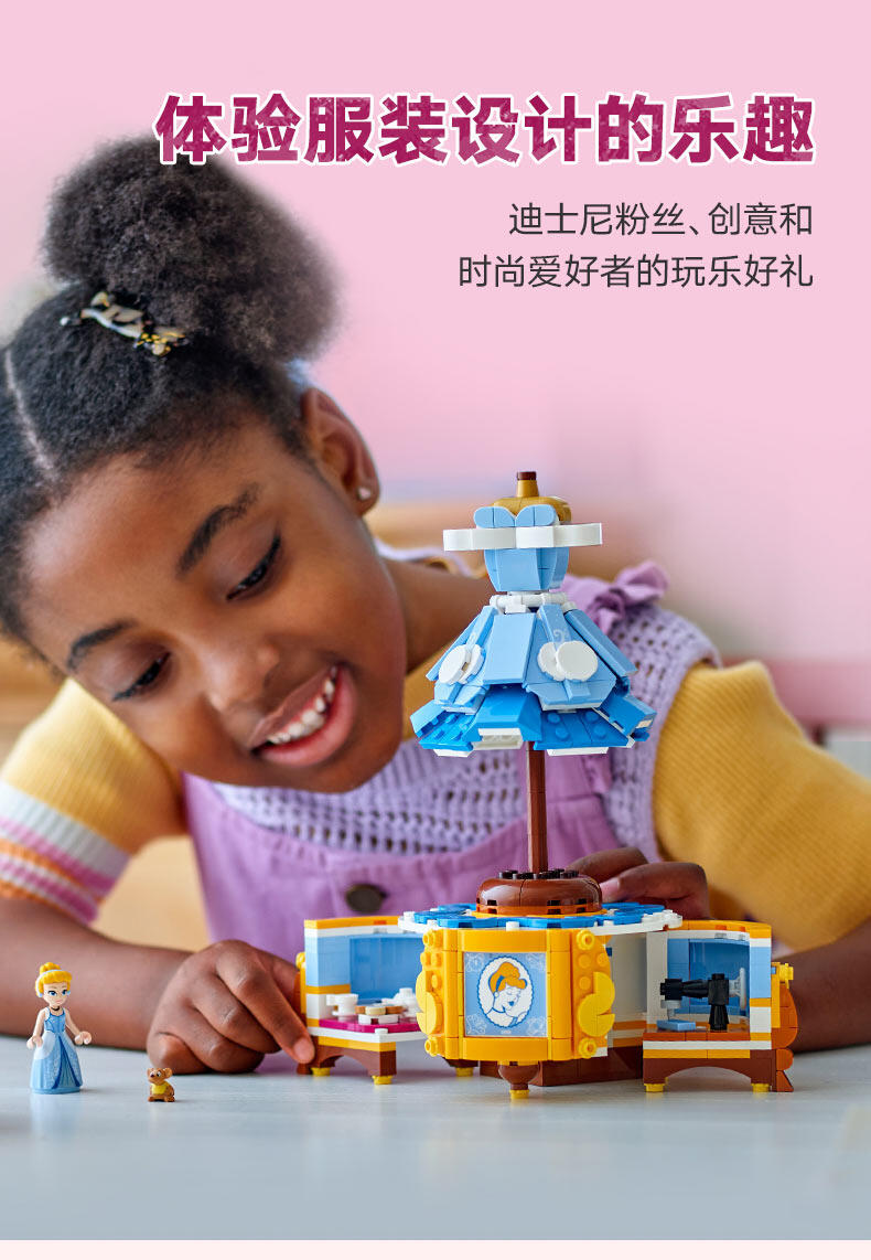 “与9岁以上的粉丝一起庆祝时尚和迪士尼灰姑娘75周年。这款灰姑娘连衣裙(43266)乐高 士尼公主建筑套件包括一件连衣裙、一个衣架和一个隐藏惊喜的展示架。还有一个乐高迪士尼迷你娃娃角色和乐高迪士尼鼠标角色,用于有趣的游戏冒险。可构建的玩具套装包括装饰展示架的元素和灰姑娘的轮廓瓷砖。
