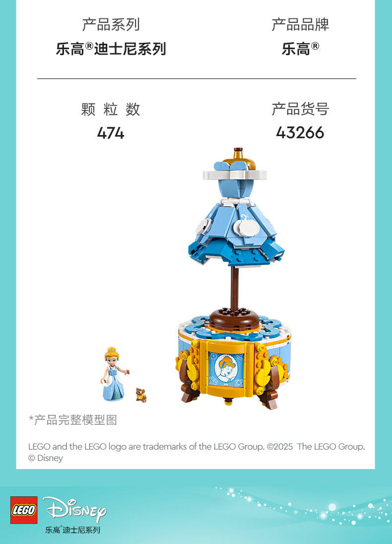 LEGO乐高 迪士尼公主系列 43266 灰姑娘的优雅长裙