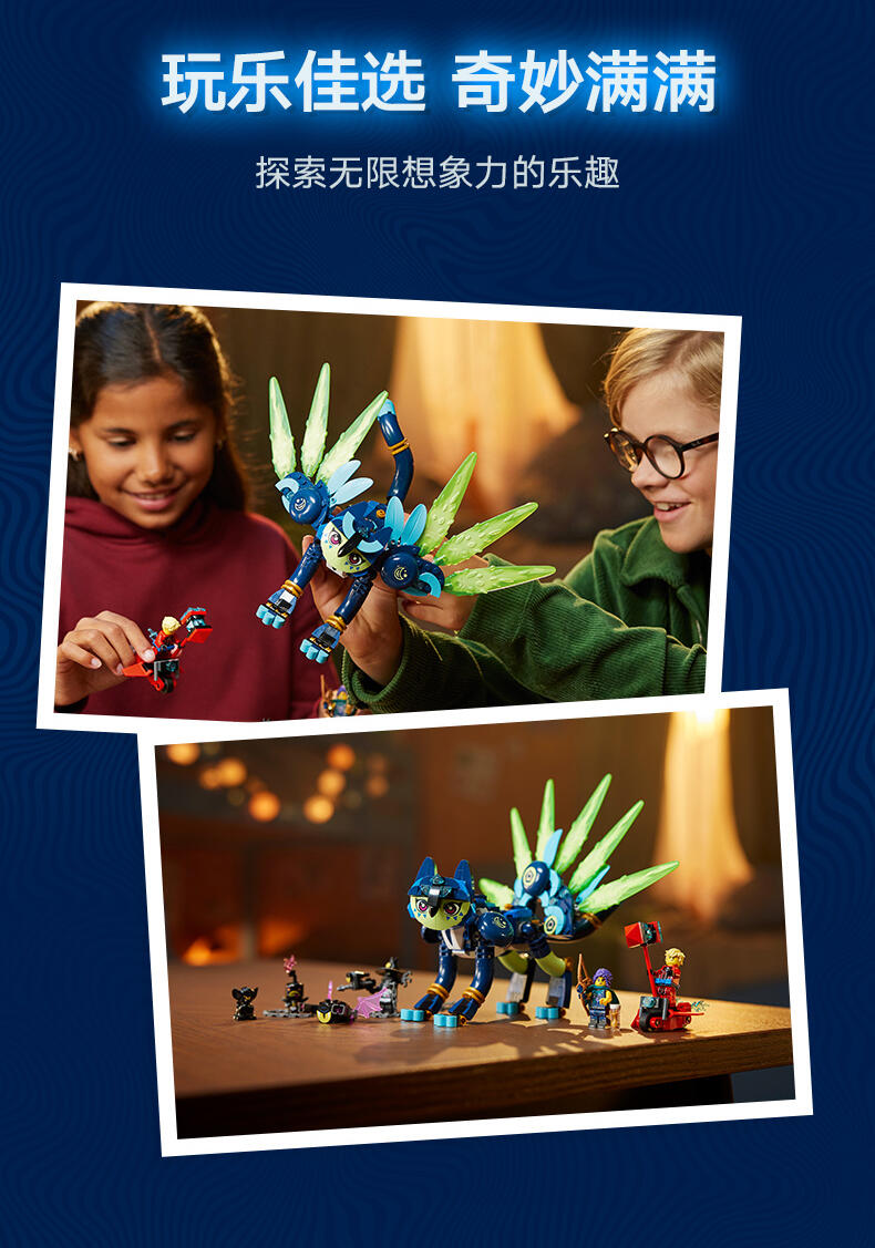 可以变形的动物玩具——这款乐高 境城猎人 伊与复合体希恩拼搭套装提供 2 个激动人心的拼搭选项,玩乐此套装,让 9 岁及以上的男孩和女孩放飞自己想象的翅膀