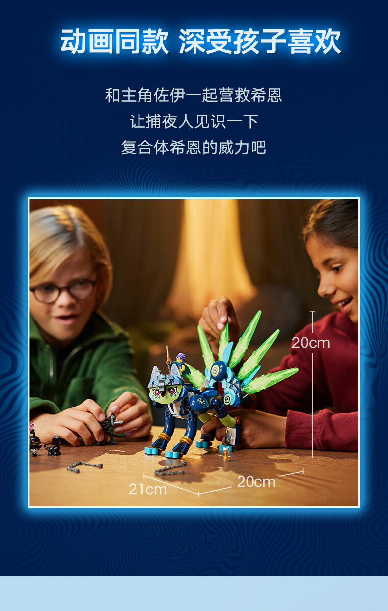 使用这款乐高 境城猎人 伊与复合体希恩 (71476) 拼搭套装来释放你的想象力。这款动物玩具源自激动人心的电视剧,允许 9 岁及以上的孩子进入梦境世界,帮助他们的主角佐伊从邪恶的捕夜人手中救出希恩。