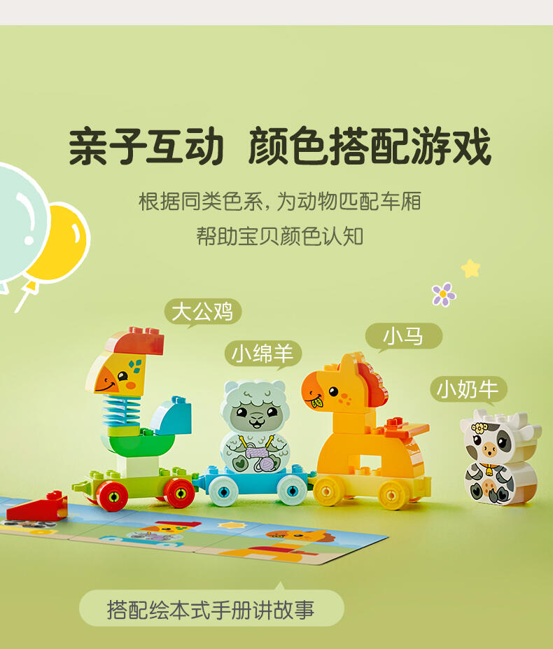 认识一个喜欢创意游戏和自然玩具的年轻人吗?向18个月大的学步儿童介绍乐高DUPLO My First Animal Train(10412)套装的配色游戏