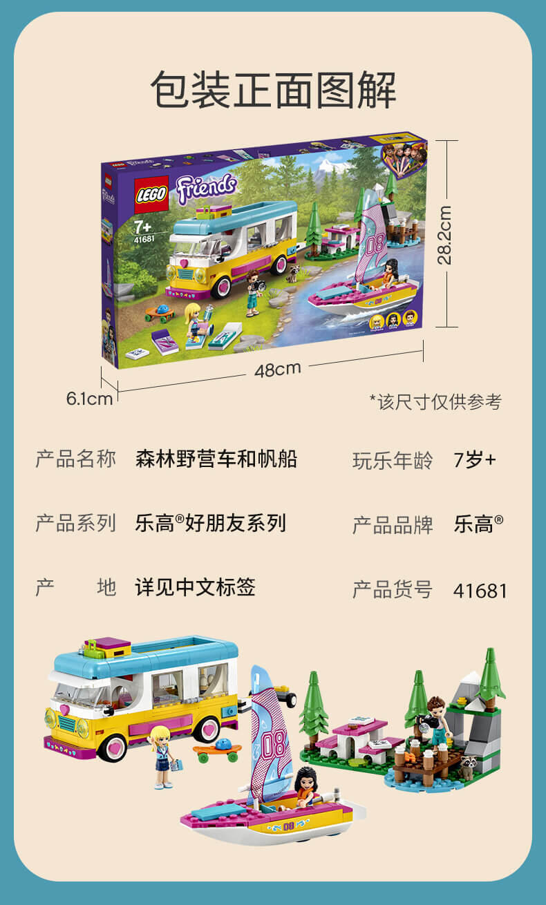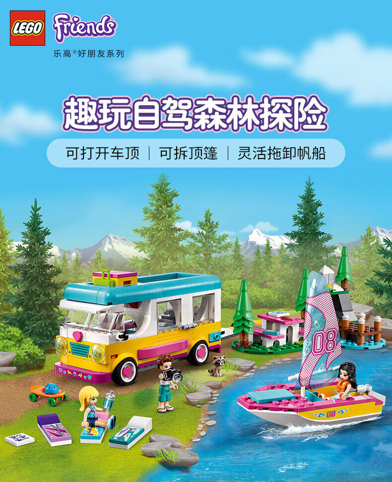 LEGO乐高 好朋友系列 41681 森林野营车和帆船