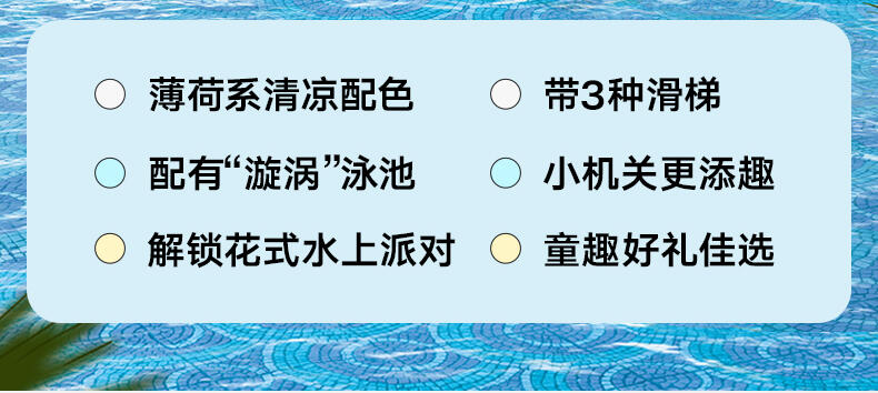 讲述利奥、阿尔巴、阿丽娅和萨拉享受充满刺激和溢美之词的一天的故事。让角色在旋转的漩涡中旋转,或者让他们在3个令人兴奋的水滑梯上加速。这里有一个螺旋滑梯和一个管式滑梯,还有一个带杠杆的瀑布滑梯,可以让船穿过瀑布。有趣的是喷水器,它带有瓷砖元素。