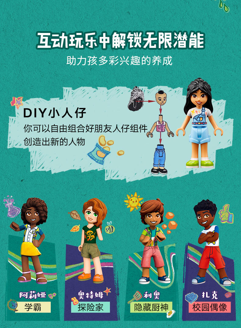 这套乐高儿童建筑充满了水上公园的细节,包括淋浴、厕所、储物柜和小吃,让孩子们可以享受数小时的创造性游戏。在LEGO Friends套装(单独出售)中发现更多儿童生日礼物。这款玩具配有乐高积木应用程序,可实现直观的构建。