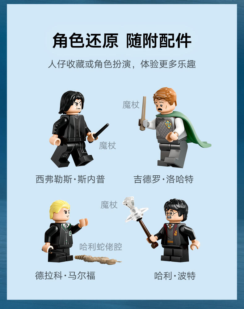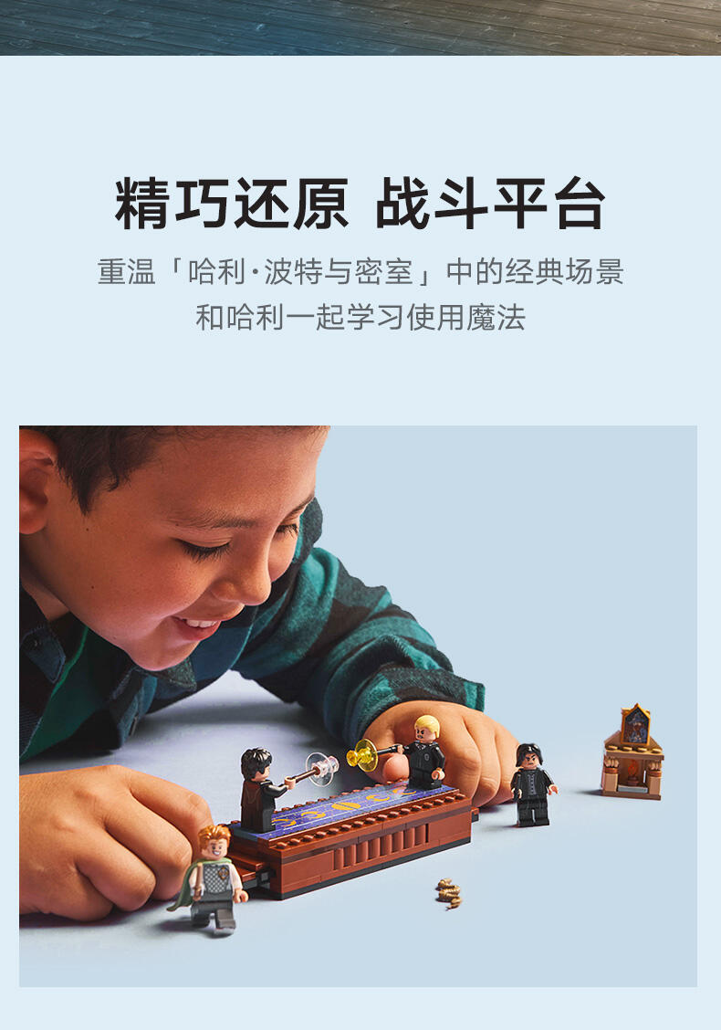 玩乐这款适合 8 岁及以上孩子的乐高 哈利·波特 霍格沃茨 城堡魔法玩具 (76441),表演引人入胜的《哈利·波特与密室》决斗俱乐部场景。本套装包含一座可以拼搭的战斗平台,可容纳 2 个小人仔(推动两端的台阶,以打倒敌对的小人仔),还包含 14 幅具有收藏价值的霍格沃茨肖像画中的 1 幅,可供展示在壁炉上方。本套装随附 4 个深受欢迎的角色:哈利·波特和德拉科·马尔福乐高小人仔,均配有魔杖和魔法组件,以及吉德罗·洛哈特和西弗勒斯·斯内普小人仔,可供进行创意角色扮演。这款套装小巧精致,是一款很酷的奖励玩具,可用来向男孩、女孩及小男巫或小女巫介绍乐高积木拼搭的魔法世界,非常适合作为孩子们的日常哈利·波特礼物。这款魔法冒险玩具套装属于模块化乐高哈利·波特拼搭玩具系列(单独出售),该系列玩具可以连接在一起,构成有史以来最精致的乐高积木霍格沃茨城堡场景。