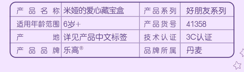 LEGO乐高好朋友系列 41358 米娅的爱心藏宝盒