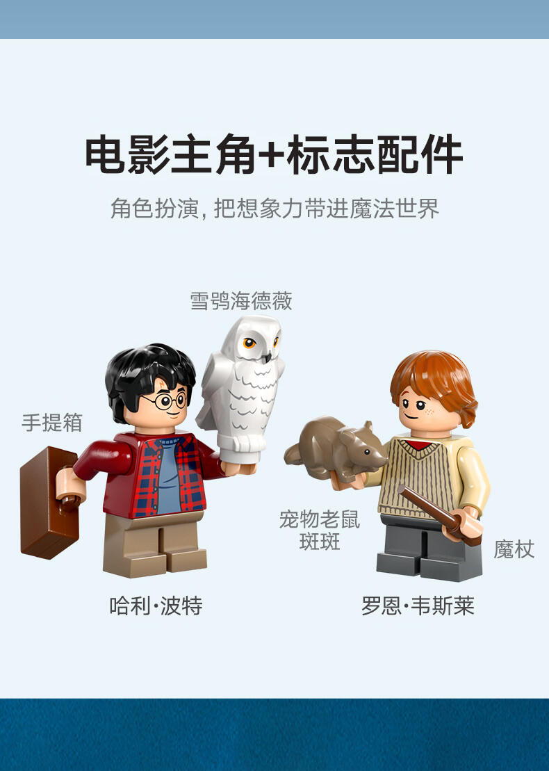 用这款专为7岁以上儿童设计的奇幻玩具,再现哈利·波特和罗恩·韦斯莱乘坐飞行福特Anglia(76424)汽车前往霍格沃茨的惊险旅程。这款乐高砖砌冒险玩具车具有可打开的车门和可拆卸的车顶,因此很容易将哈利波特和罗恩·韦斯莱的迷你形象以及海德薇猫头鹰形象放在车内。行李箱里还有空间放行李箱、哈利和罗恩的魔杖以及罗恩的宠物老鼠Scabbers。这款高质量的儿童建筑玩具是男孩和女孩最好的日常礼物或生日礼物,让他们扮演《哈利·波特与密室》中的标志性场景,编造自己的魔法故事。这款冒险车游戏套装可以与其他乐高哈利波特建筑套装(单独出售)一起使用,激发年轻巫师、女巫和麻瓜的想象力,并为他们提供更多的游戏可能性。