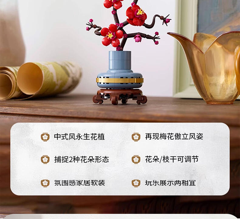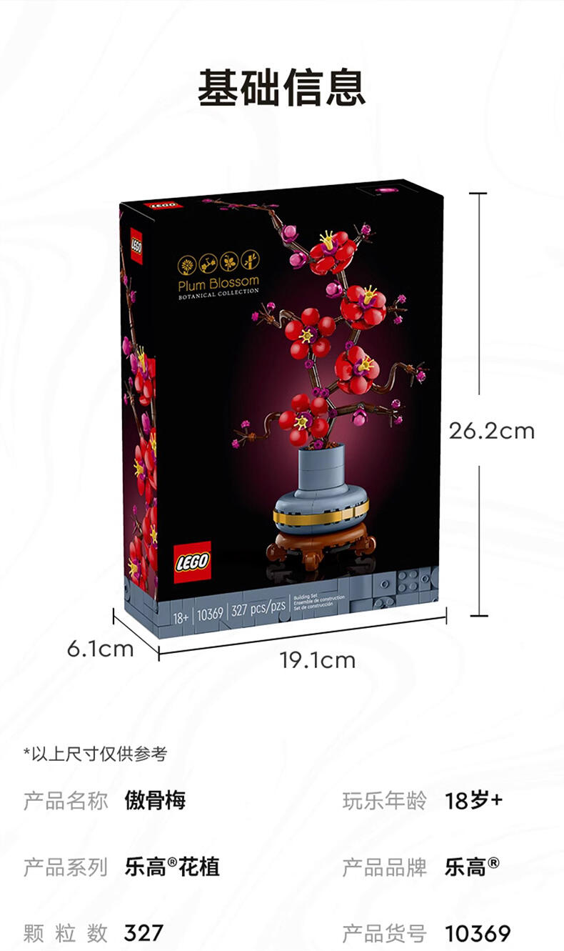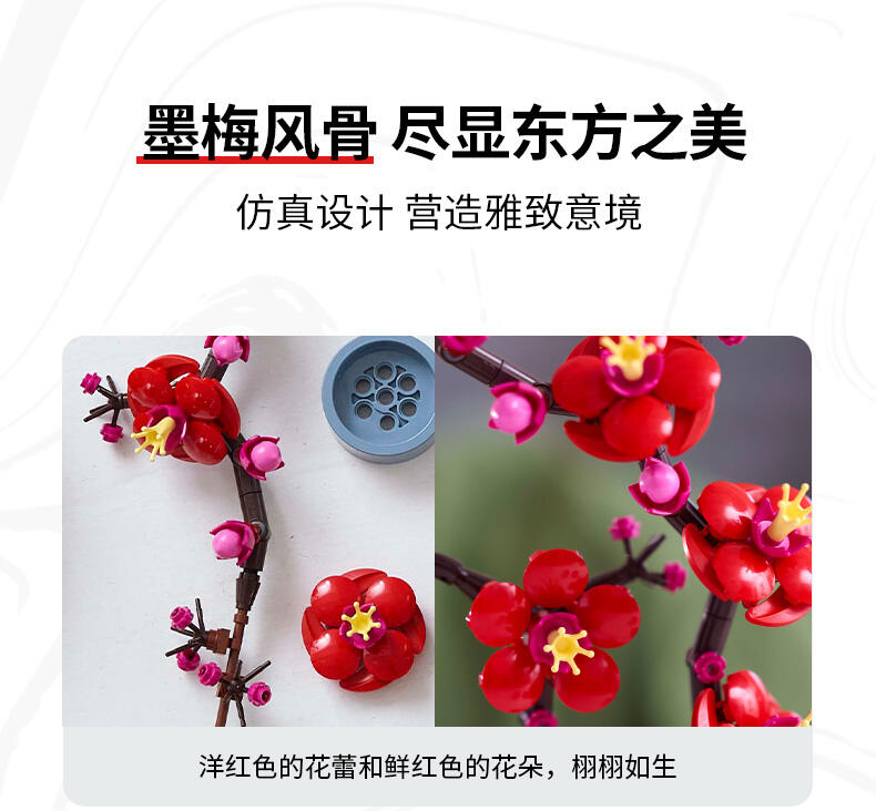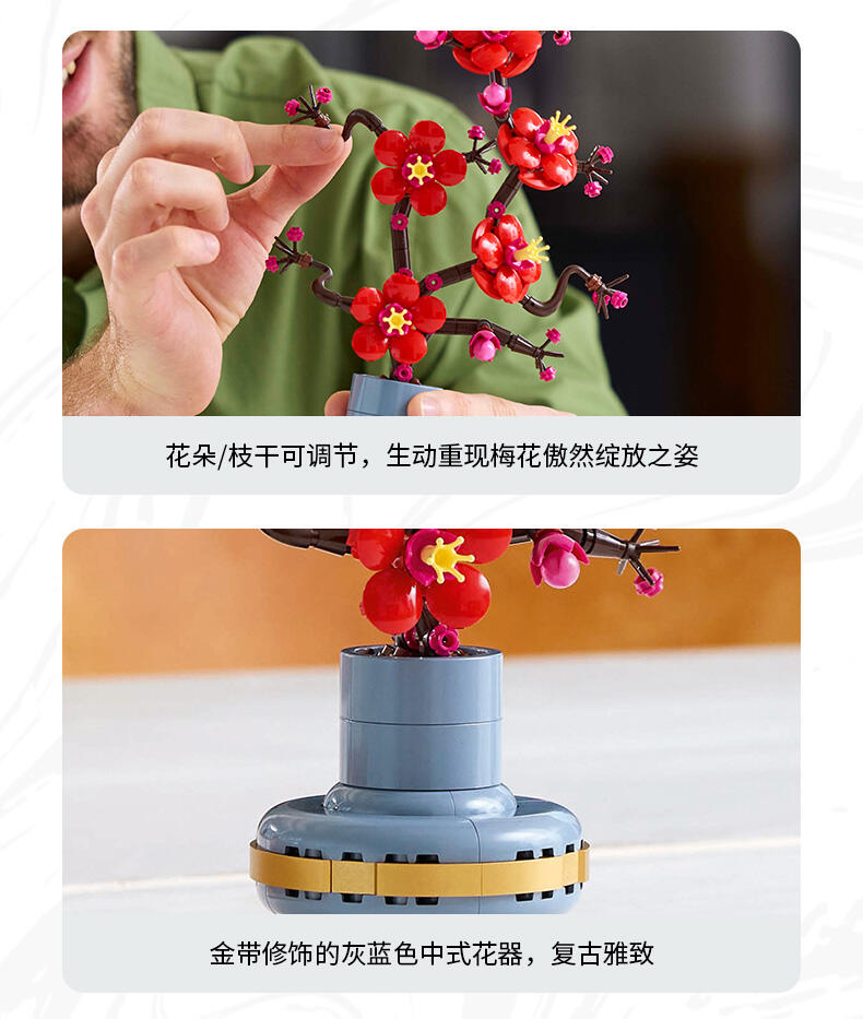 花点时间欣赏乐高图标梅花(10369)成人花建筑套装。梅花是传统艺术中一个受欢迎的主题,经常在水墨画中描绘为被称为四君子的经典四重奏美丽植物的一部分。用这个乐高人造花套装沉浸在一个有意识的建筑项目中,或者用这个永恒的花卉展示来招待爱人。。
