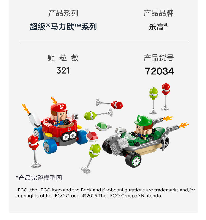 LEGO乐高 超级马力欧系列 72034 马力欧卡丁车 – 马力欧宝宝 vs 路易吉宝宝