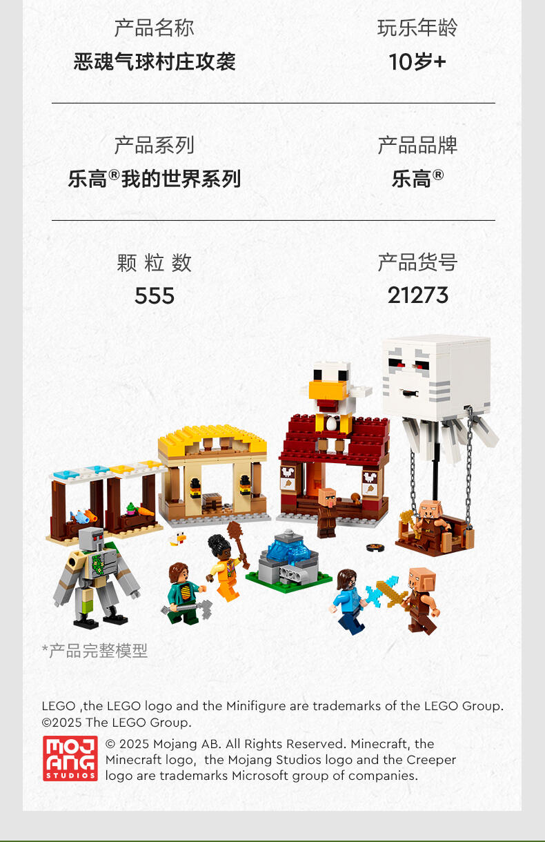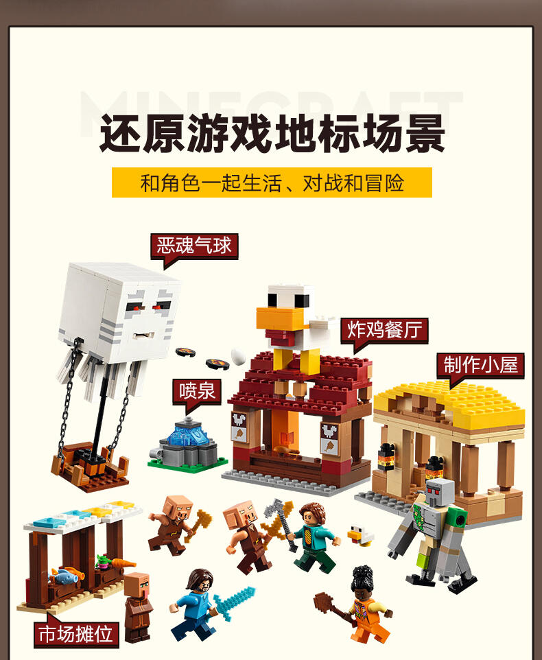 LEGO乐高 我的世界系列 21273 恶魂气球村庄攻袭