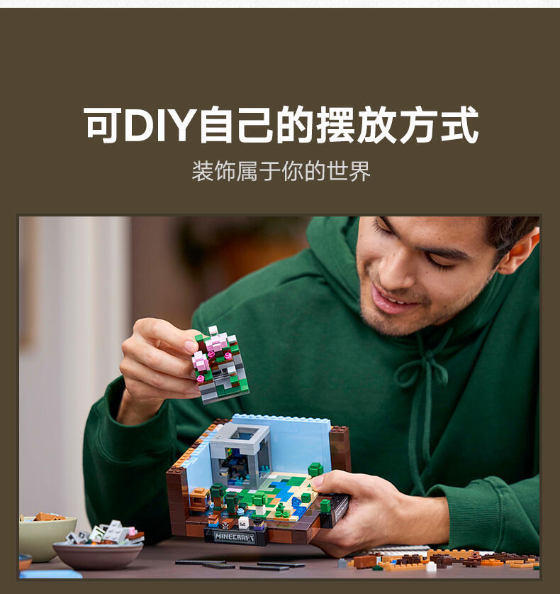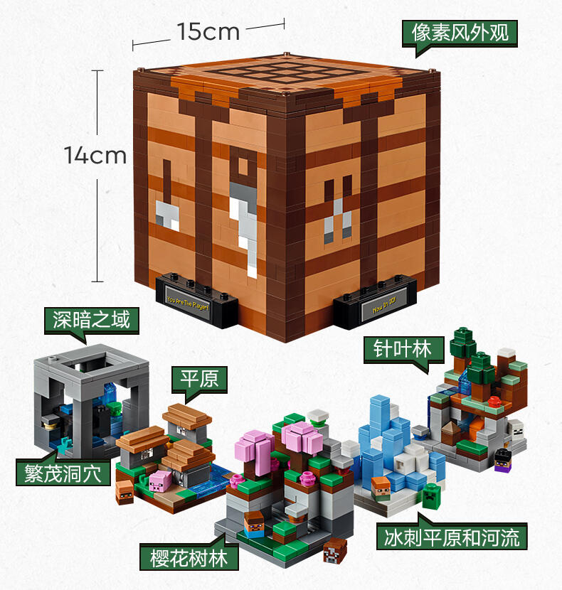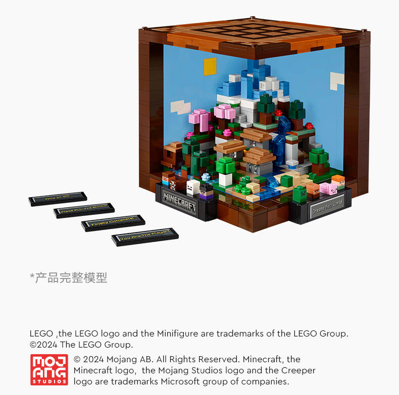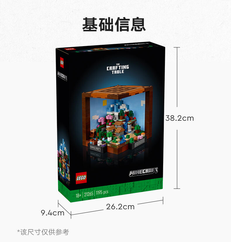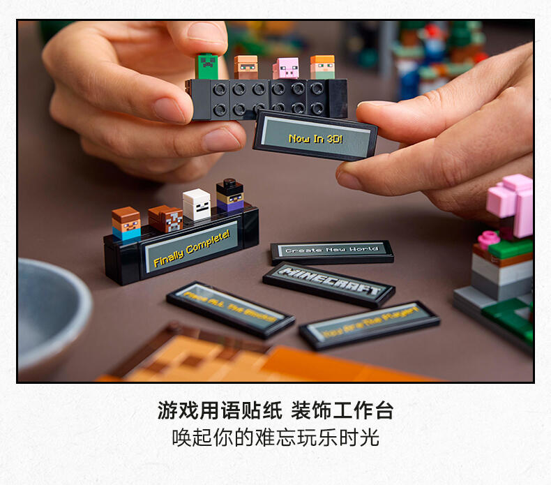 “这款为成人设计的乐高建筑套装是为流行视频游戏15周年而设计的,用以庆祝《我的世界》的创造力。《乐高的世界》中的制作桌(21265)包括熟悉的生物群落、最喜欢的《我的游戏》角色和怪物,以及隐藏的复活节彩蛋,供游戏的成年粉丝发现和展示。