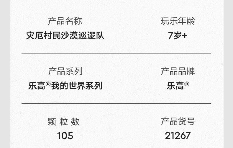LEGO乐高 我的世界系列 21267 灾厄村民沙漠巡逻队