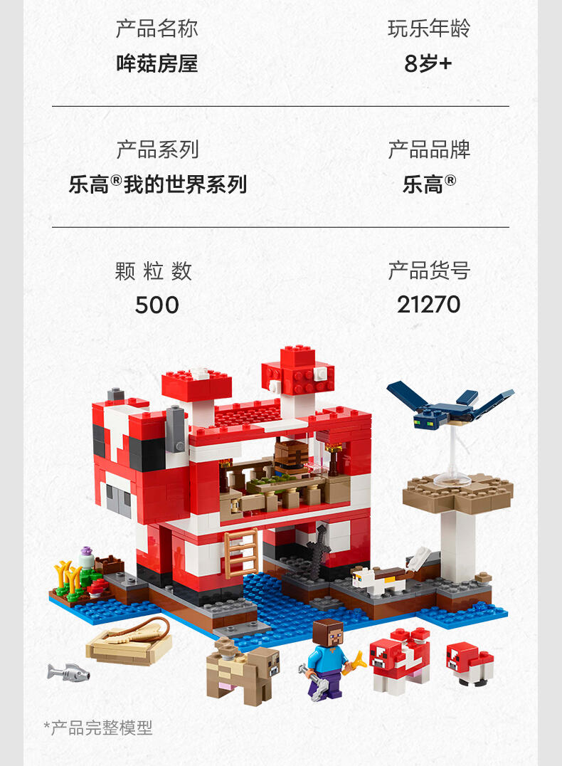 LEGO乐高 我的世界系列 21270 哞菇房屋