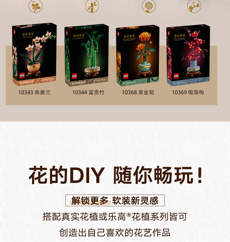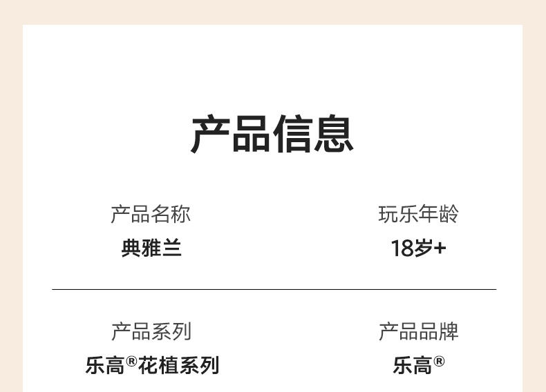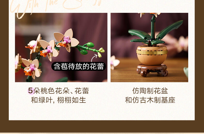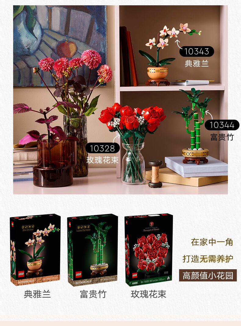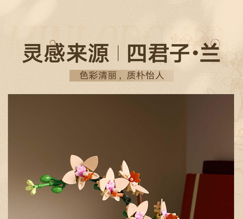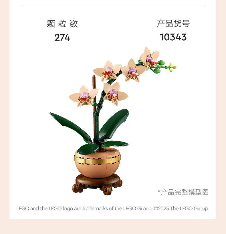 让乐高 你兰花(10343)成人建筑套件让创造力绽放。这款兰花是送给女性、男性和花迷的华丽装饰植物礼物,它是一种令人惊叹的花卉展示,永远不需要浇水。逼真的复制品以5朵盛开的兰花和几朵含苞待放的兰花为特色,还有叶子,以增加真实感。它还配有一个浅色的陶土花盆,放在一个美丽的木制底座上,让初露头角的花店很容易将乐高花自豪地展示为美丽的家居或办公室装饰,为任何生活或工作空间带来大自然的宁静。兰花是传统艺术中被称为“四君子”的四种经典美丽植物的一部分,代表春天的季节,被认为象征着新的开始,使这款成人乐高套装成为一份贴心的乔迁礼物、生日礼物或特殊场合的善意姿态。