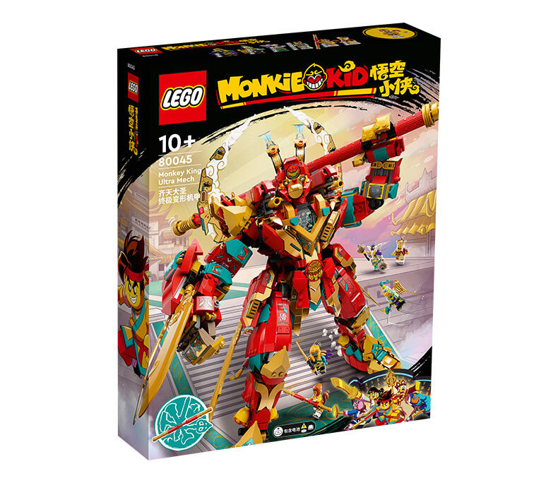 玩乐这款积木拼搭式乐高悟空小侠齐天大圣终极变形机甲 (80045),让 10 岁及以上的孩子对经典神话故事充满热情。本套装源自原始“齐天大圣黄金机甲”,拥有升级的细节和功能,可以增强玩乐体验:背部火箭推进器、全新的机甲设计、新设计的火眼金睛神技(带有发光积木)、金箍棒以及可以转变为喷气式飞机的武器。