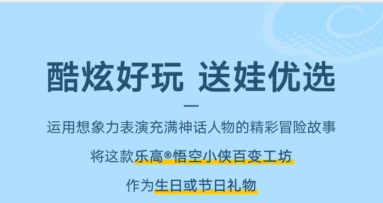 可搜集的乐高悟空小侠系列盒组灵感来自经典小说《西游记》,让大人以现代又好玩的方式跟孩子分享孙悟空传说。