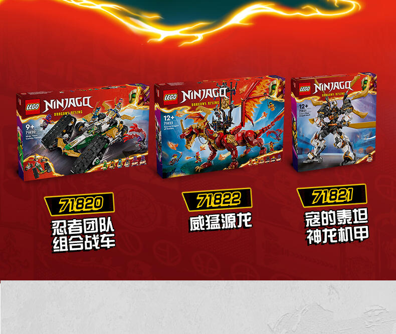 乐高忍者系列可供儿童建造的忍者玩具包括龙、车辆和寺庙,因此粉丝们可以与他们的英雄进行角色扮演冒险。这款可构建的龙玩具套装是送给12岁以上男孩、女孩和孩子的绝佳生日礼物,可以播放他们最喜欢的《乐高忍者龙崛起》第二季中的场景。