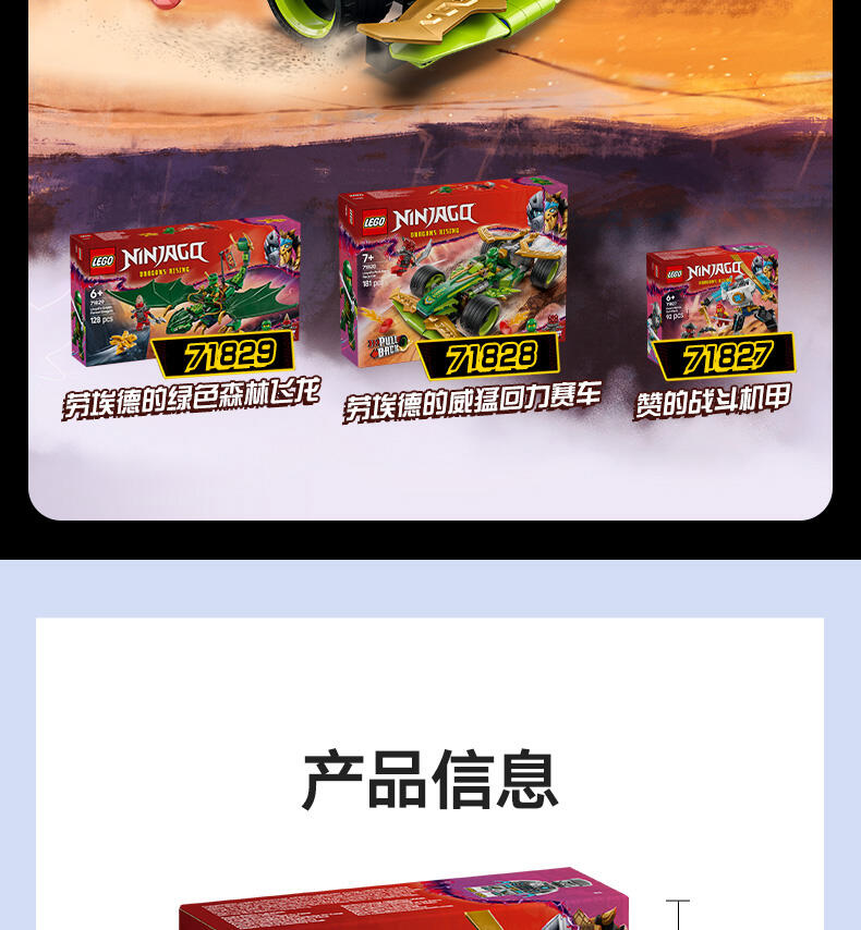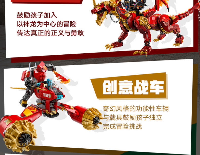 乐高幻影忍者系列套装和动作拼搭玩具包含各式各样的机甲、神龙和神庙,以便粉丝们进行行动角色扮演。可以使用 LEGO Builder 应用程序拼搭和创造每款忍者玩具套装,它会引导您及您的孩子踏上轻松直观的拼搭冒险之旅。